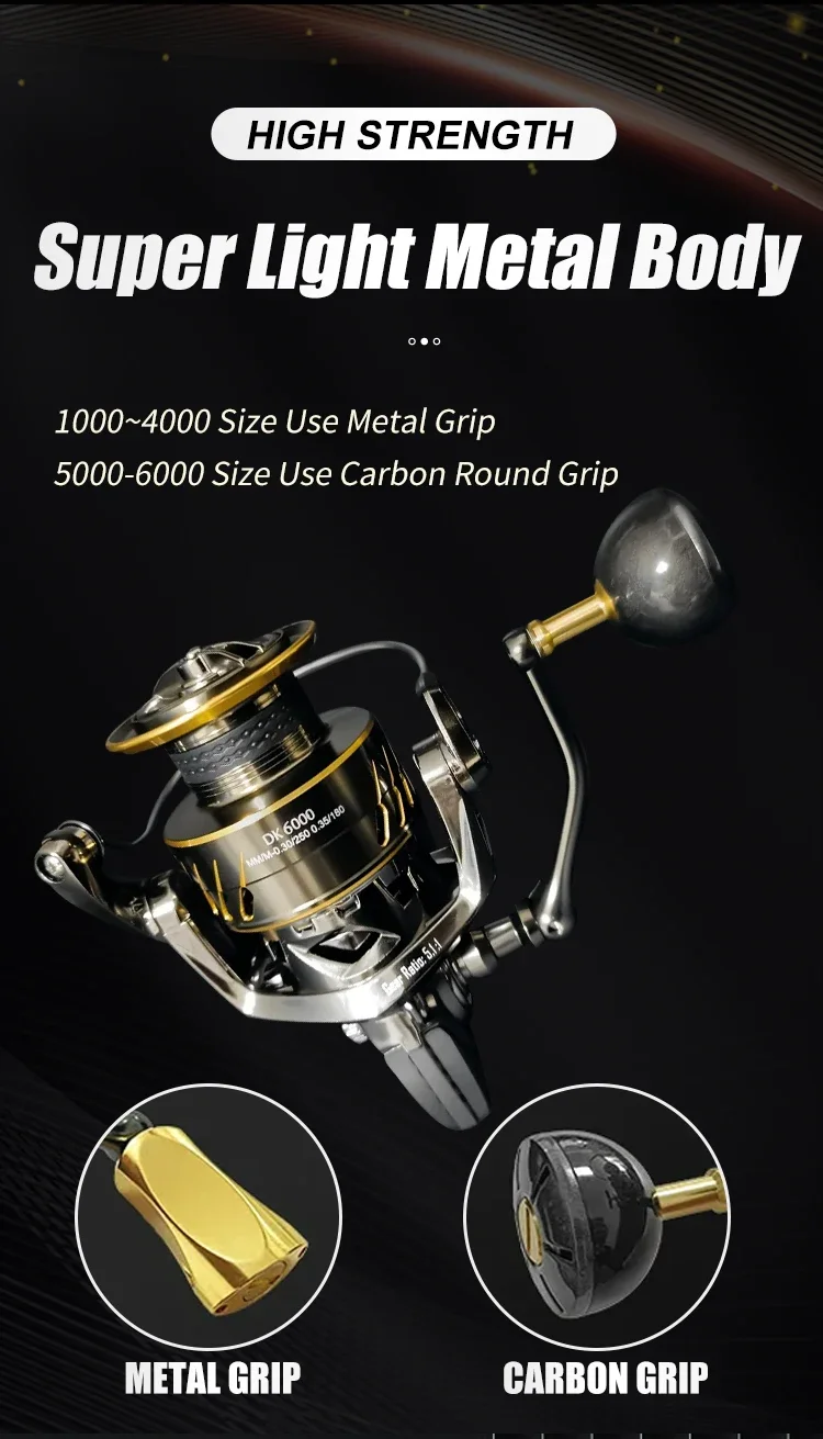 6. El diseño de cuerpo de metal ultraligero y el carrete de aluminio mecanizado CNC son ideales para luchar contra peces grandes.