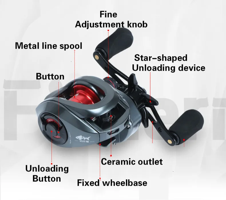 1. 7,3 súper alta relación de transmisión: 1, más rápida que el carrete de cebo normal.