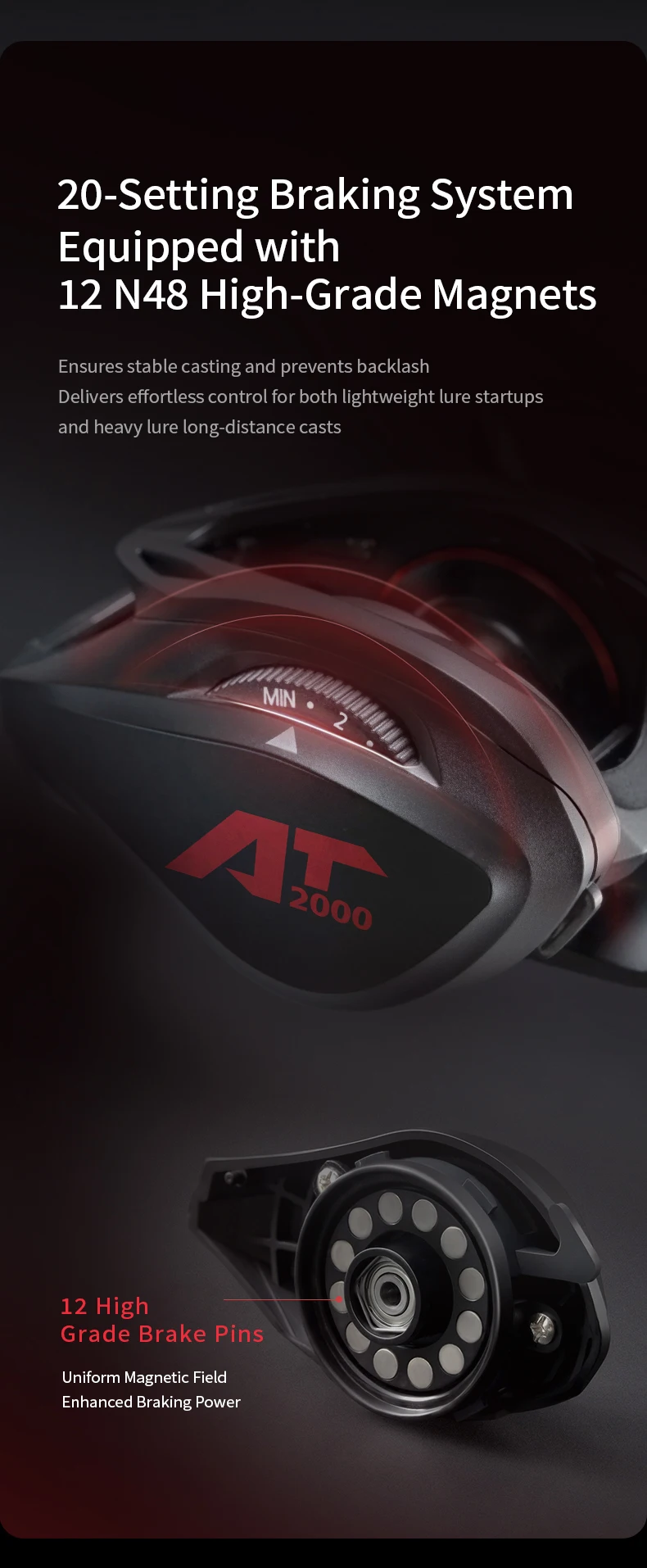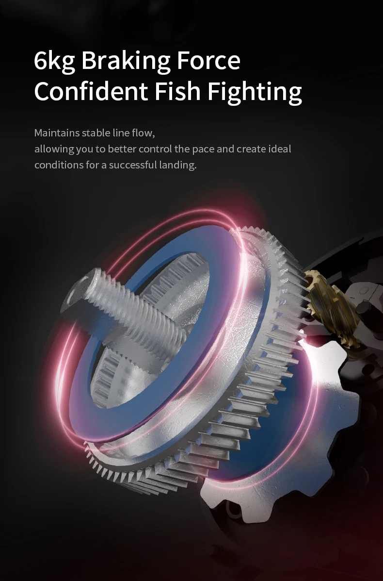 Con un brazo oscilante doble, este carrete proporciona una potente resistencia máxima de 6 kg, lo que le permite manipular peces más grandes con facilidad.