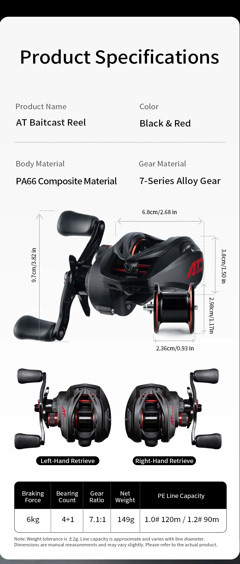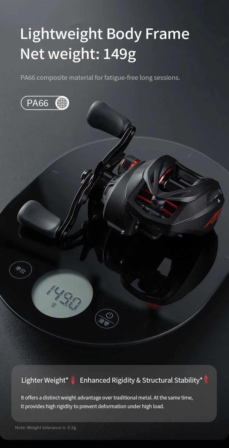 El carrete de pesca CHILENT AT2000 Baitcast cuenta con un impresionante diseño ultraligero, que pesa solo 149 g, lo que lo hace perfecto para sesiones de pesca prolongadas.