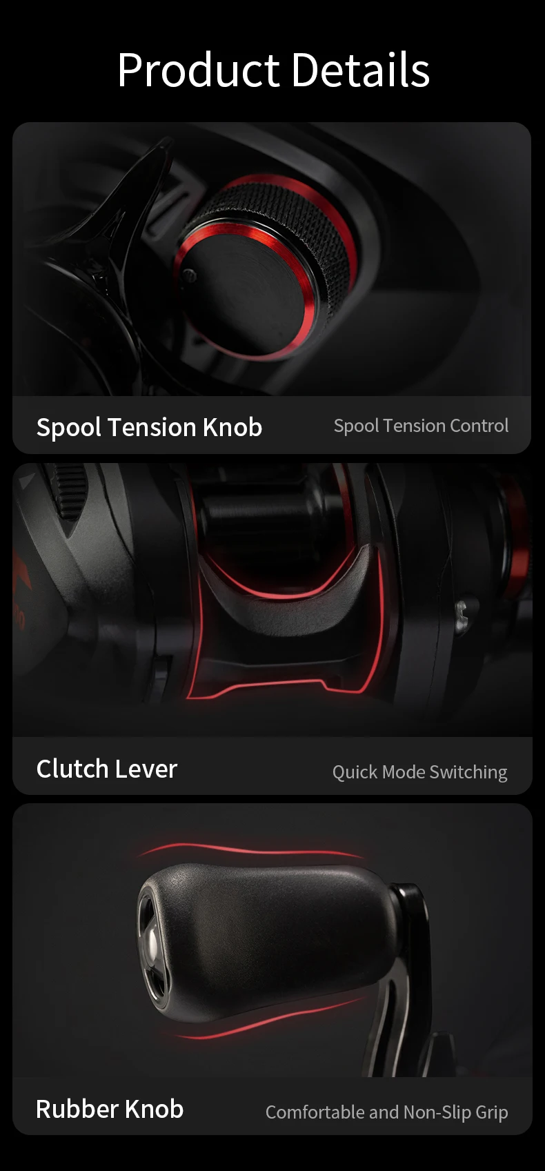 Diseñado tanto para pescadores diestros como zurdos, la dirección ambidiestra de la mano del carrete garantiza comodidad y facilidad de uso para todos los usuarios.