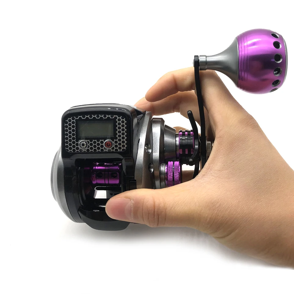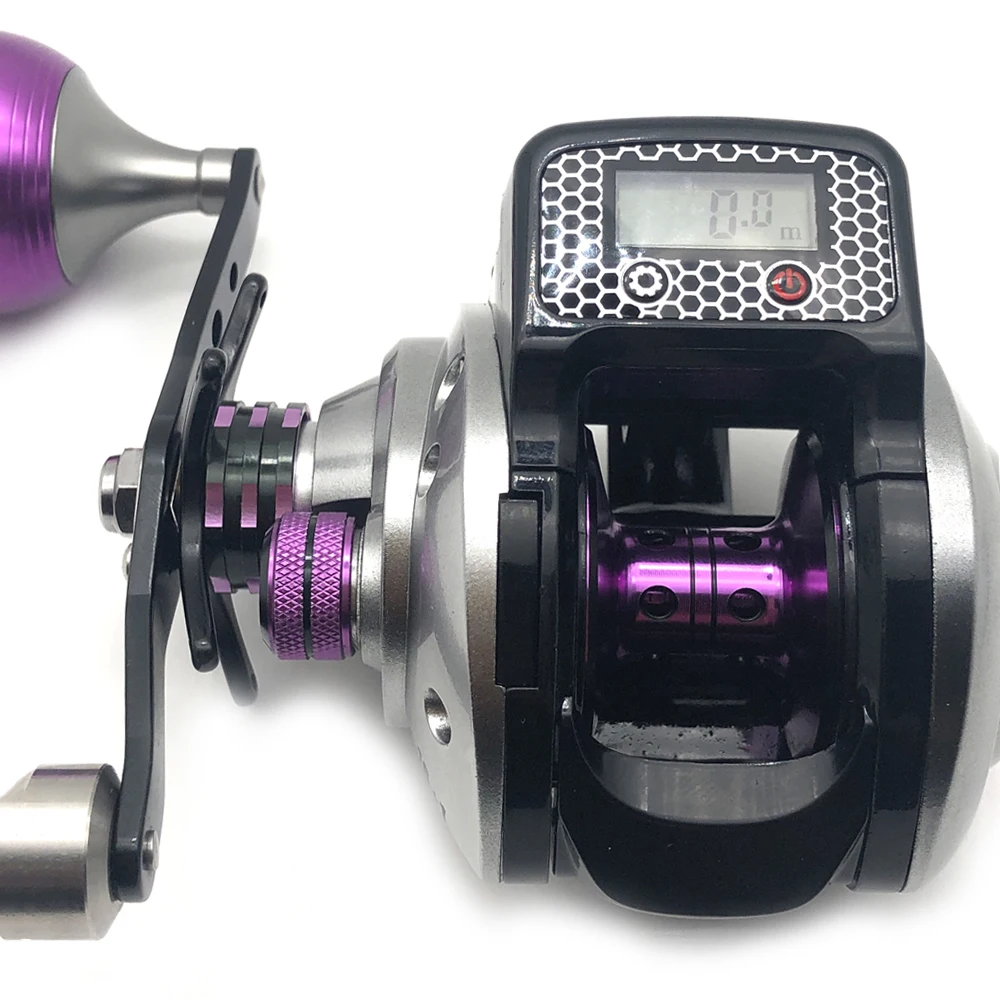 La pantalla digital mide la longitud de la línea en metros y el número de bobinado de línea.