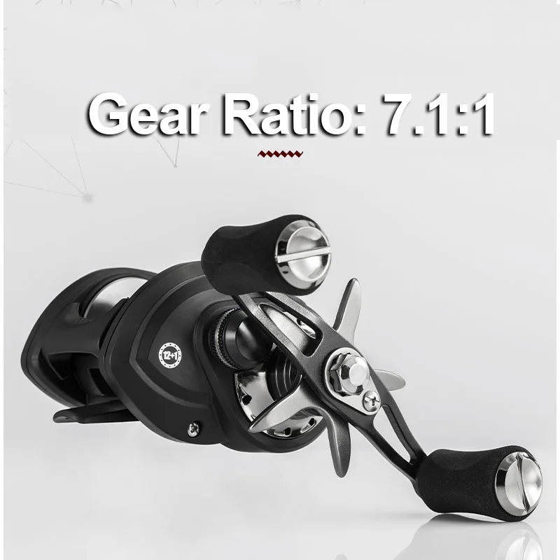 Carrete Baitcasting de alta velocidad - Carrete de metal ultraligero resistente al agua salada con arrastre máximo de 10kg. Relación de engranaje 7,1:1 para lanzamientos largos. Sistema de freno magnético dual. 13 rodamientos de acero inoxidable de alta velocidad.