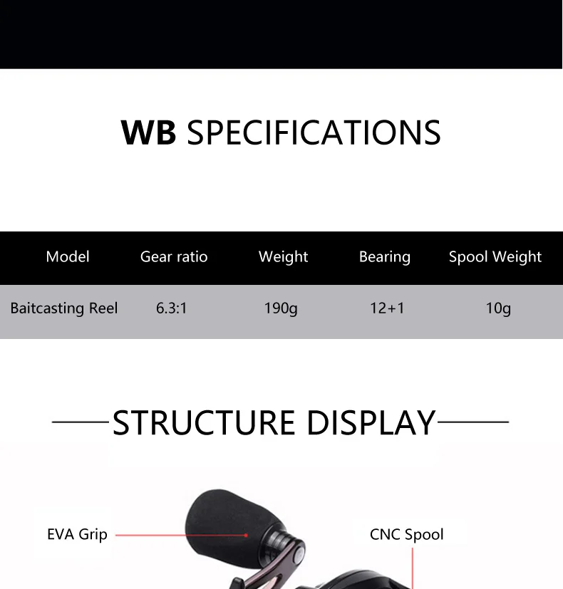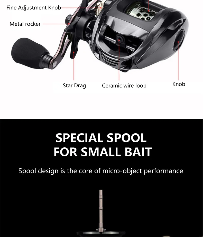 Carrete de pesca Baitcasting, accesorio de arrastre máximo de 5,5 KG, relación de engranaje 6,3: 1, ligero, rueda de pesca derecha/izquierda 12 + 1BB, novedad de 2021