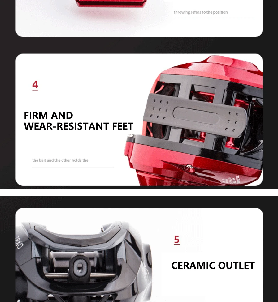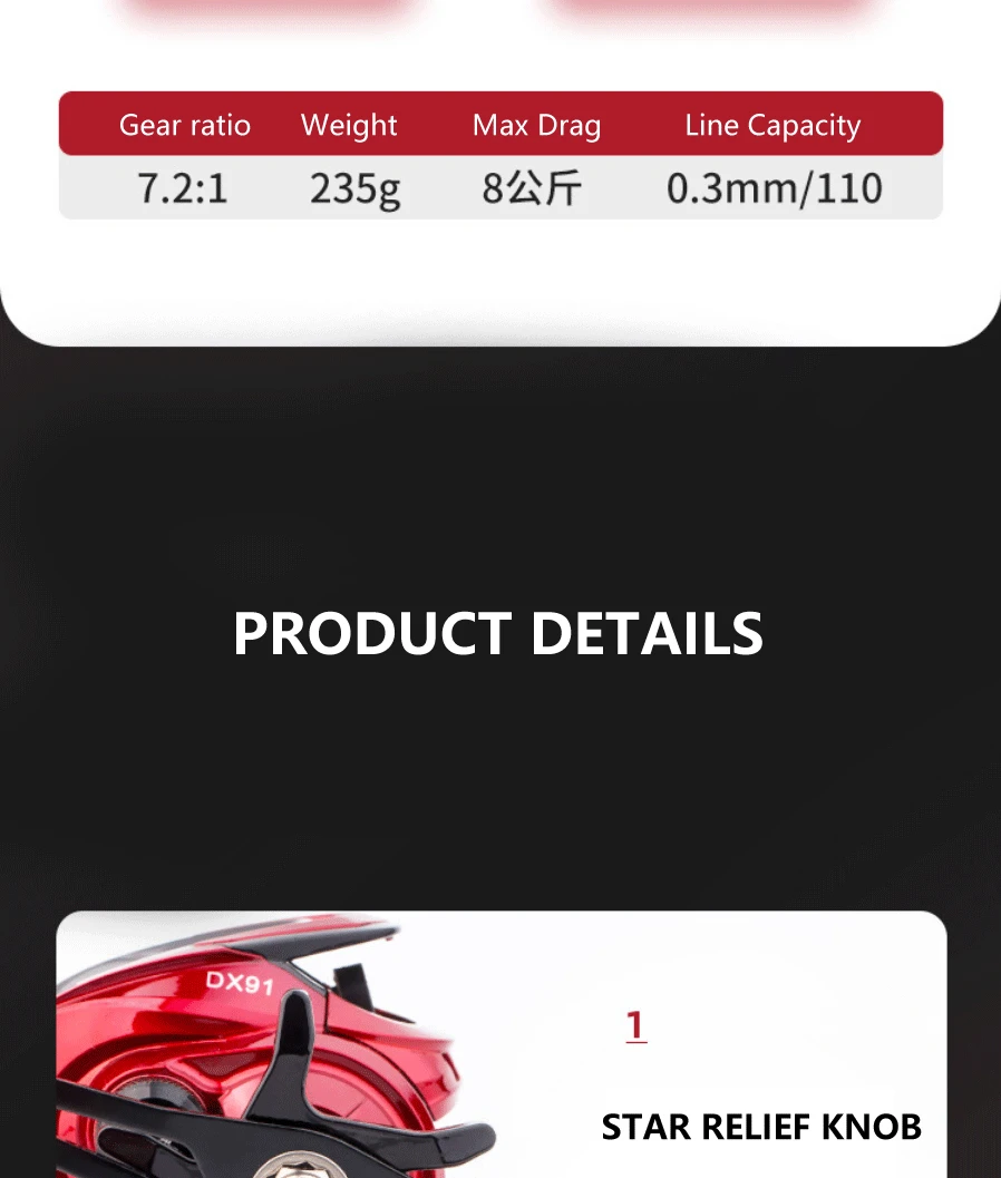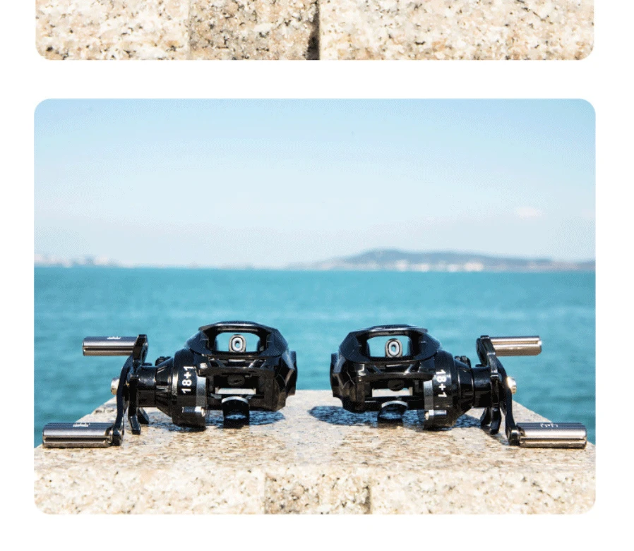 Carrete de pesca Baitcasting de aleación de aluminio para agua salada, rueda de pesca de alta velocidad, 18 + 1BB, negro/rojo, 7,2: 1