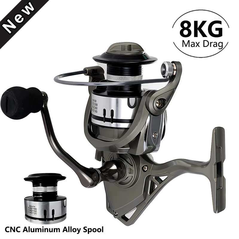 1. Copa de línea de metal de gran capacidad, resistente y duradera, no se deforma fácilmente, y la salida de la línea es suave sin dañar la línea de pesca.