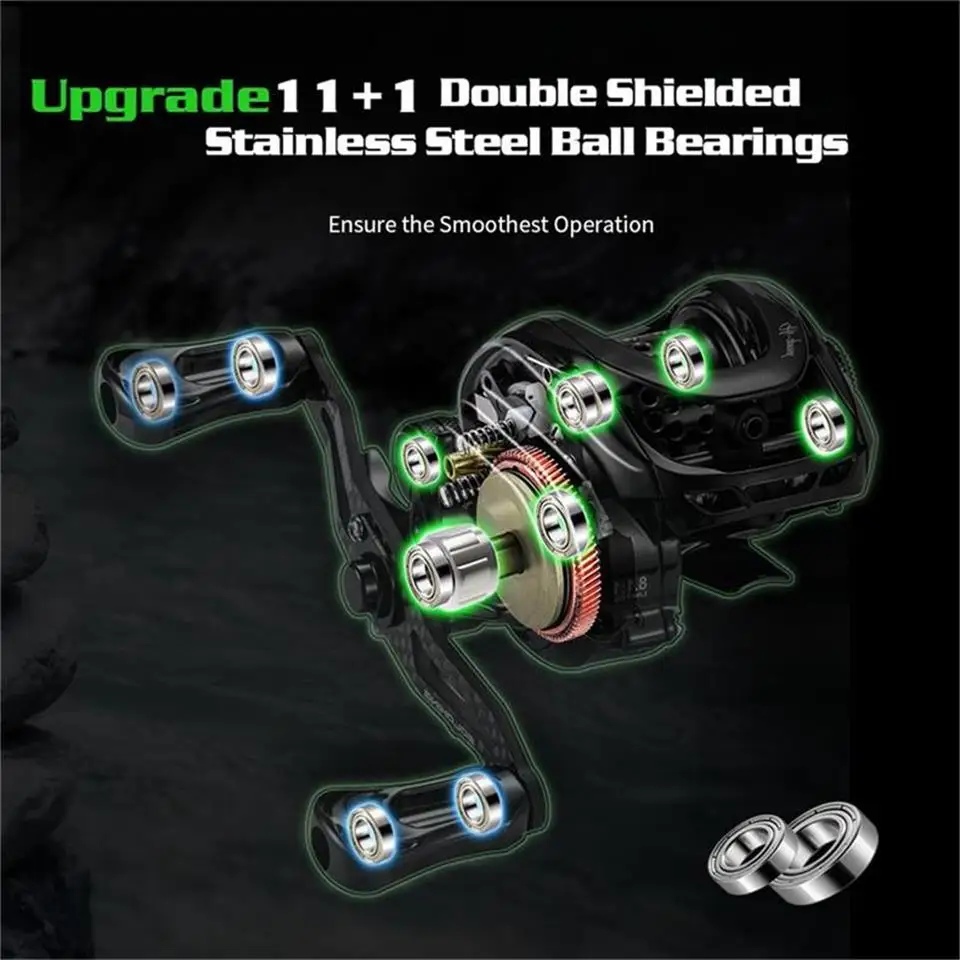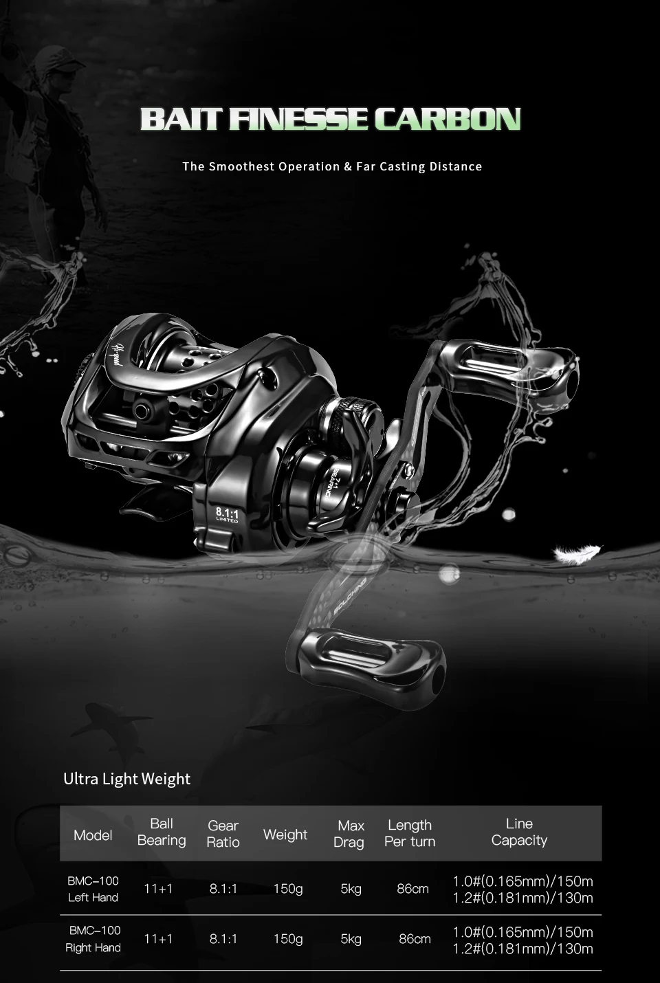 Cebo súper ligero Finesse Sistema de carbono 150g sistema de freno magnético 8,1: 1 Relación de engranaje 11 + 1 bobina de pesca de carrete de fundición