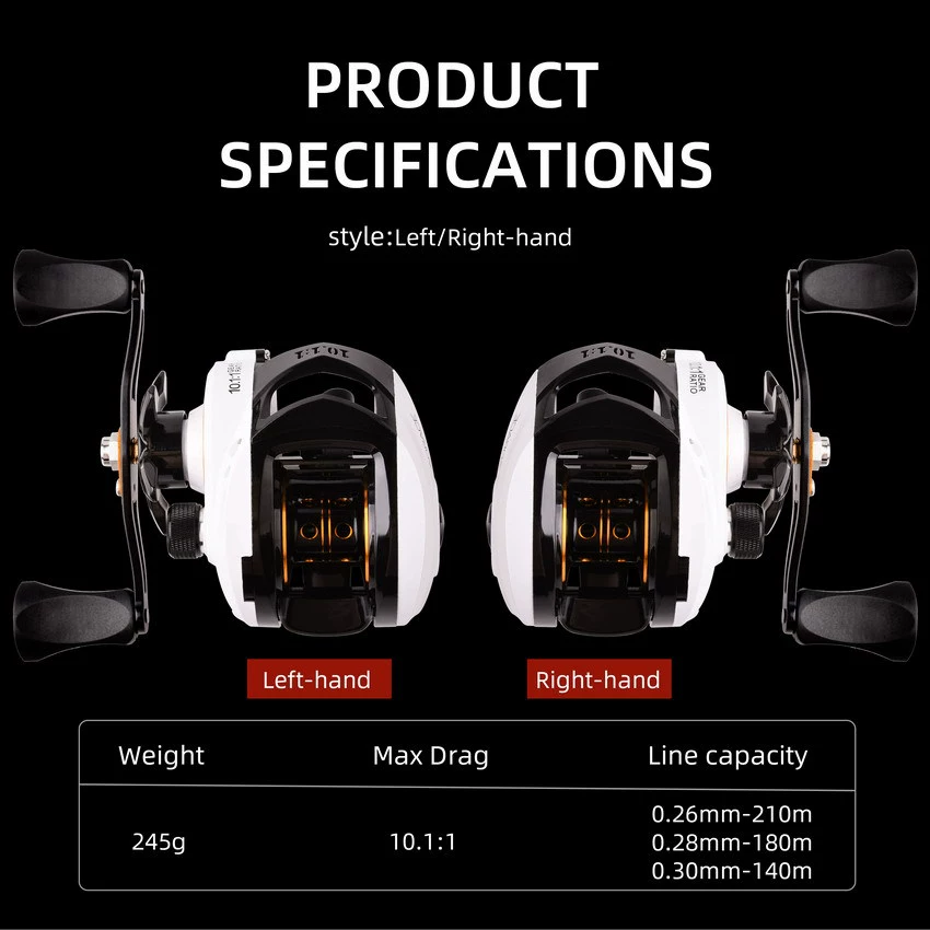 Carrete de Pesca Baitcasting, carrete blanco y negro, potencia de arrastre para diestros y zurdos, ruedas de Pesca de carpa de 10kg, seguimiento de Pesca