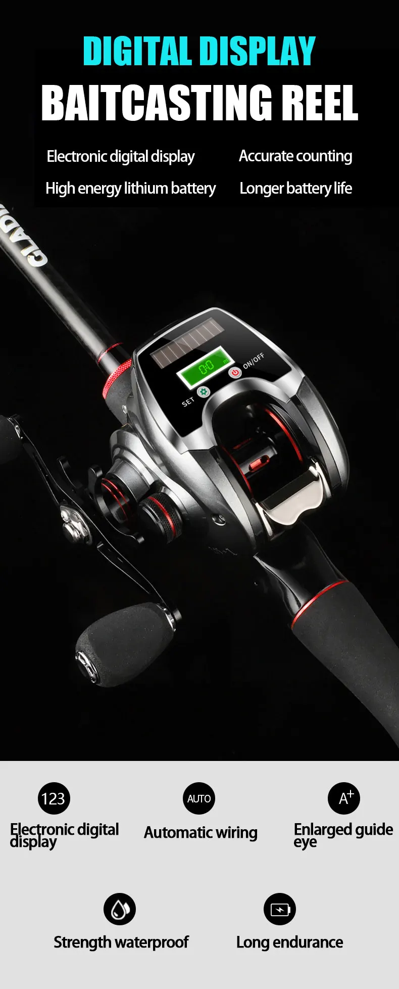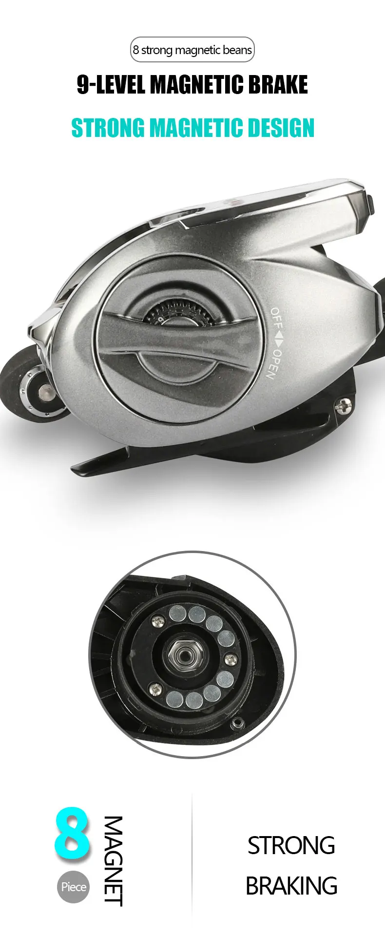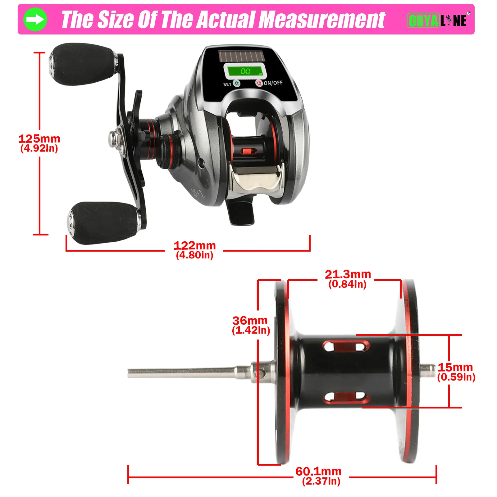 Carrete de pesca electrónico de Baitcasting SL500 8,0: 1 6 + 1BB 10kg, Ratio de carga Solar USB, sistema de freno magnético, fundición Moulinet
