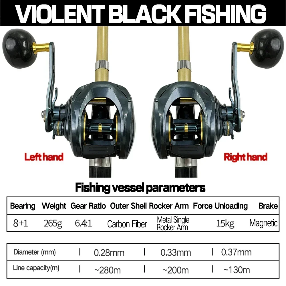 El material de carbono es más duradero, más resistente a altas temperaturas y más liviano que el plástico industrial, lo que produce una potente potencia de arrastre y le ayuda a aliviar el estrés al lanzar la pesca.