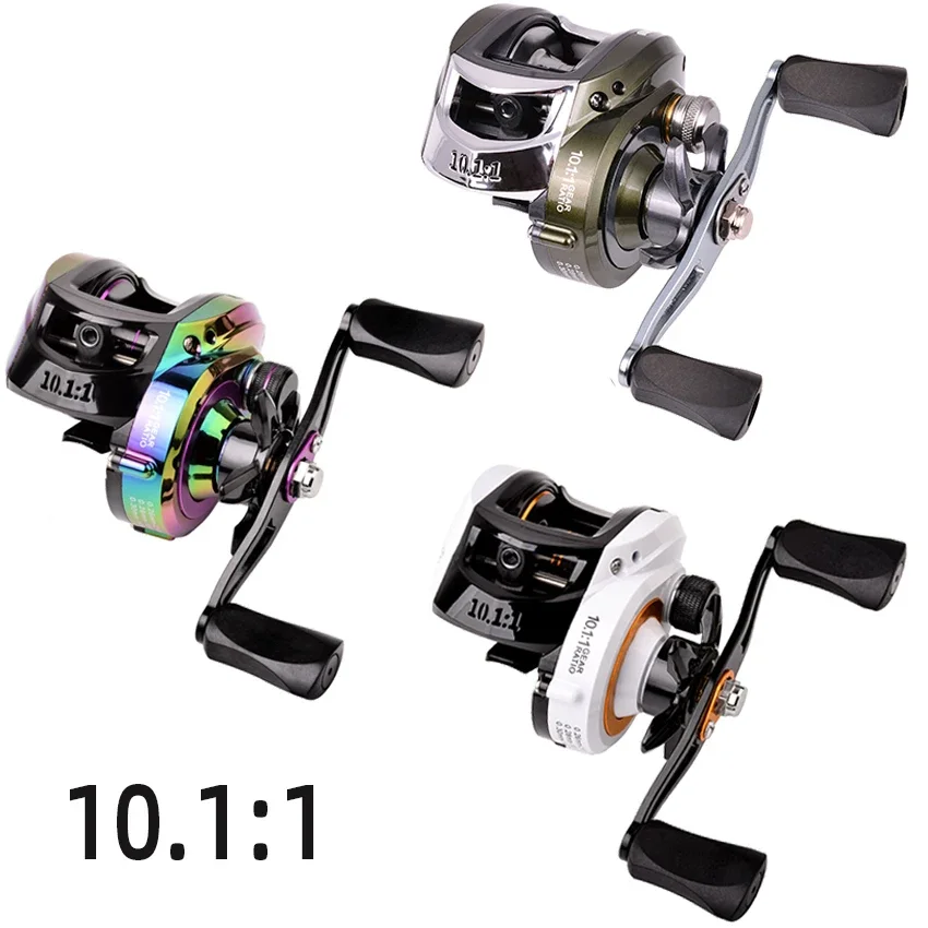 Carrete de pesca Baitcasting largo 10,1: 1, relación de engranaje, alta potencia, 10KG de arrastre, bobina de pesca de agua salada, accesorios de pesca