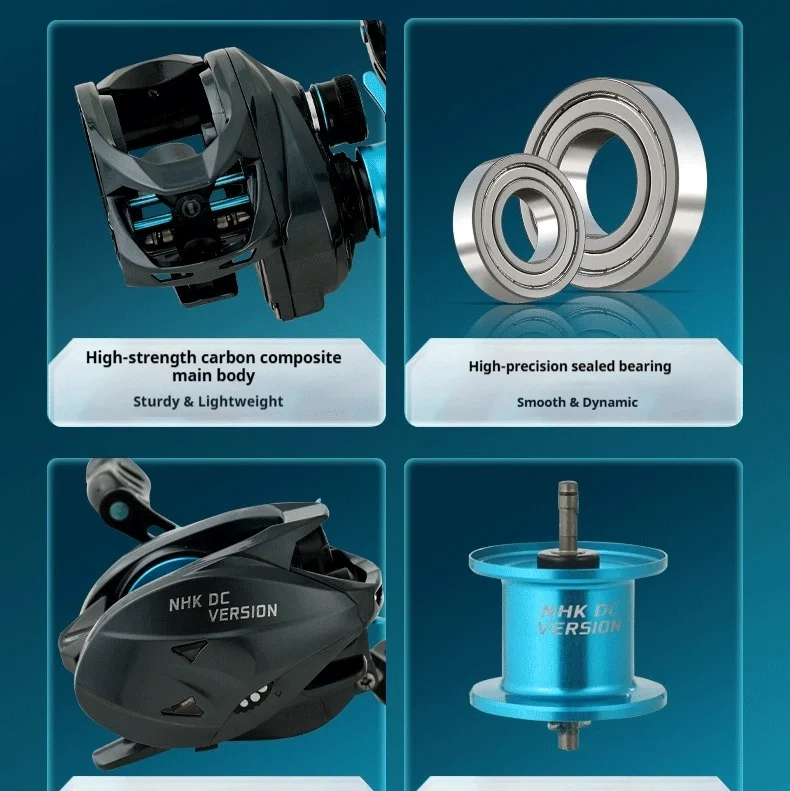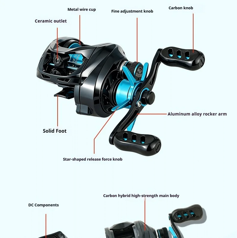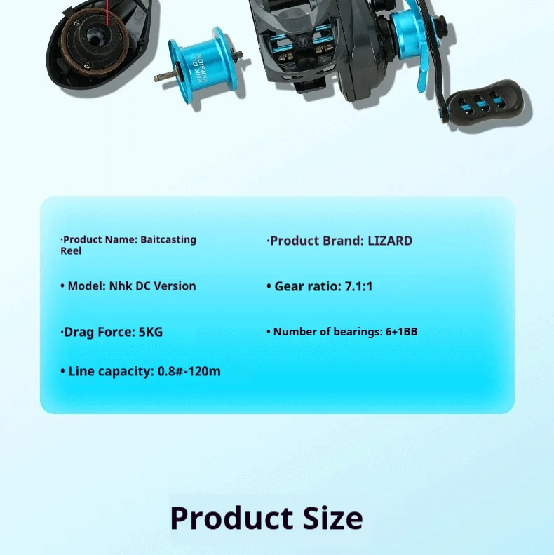 Carrete de Pesca Baitcasting LIZARD BOKI DC, Control Digital, Lanzamiento Largo, Arandelas de Carbono, 7.6:1, 10+1BB, Arrastre Máximo 5kg, Carrete para Agua Dulce y Salada