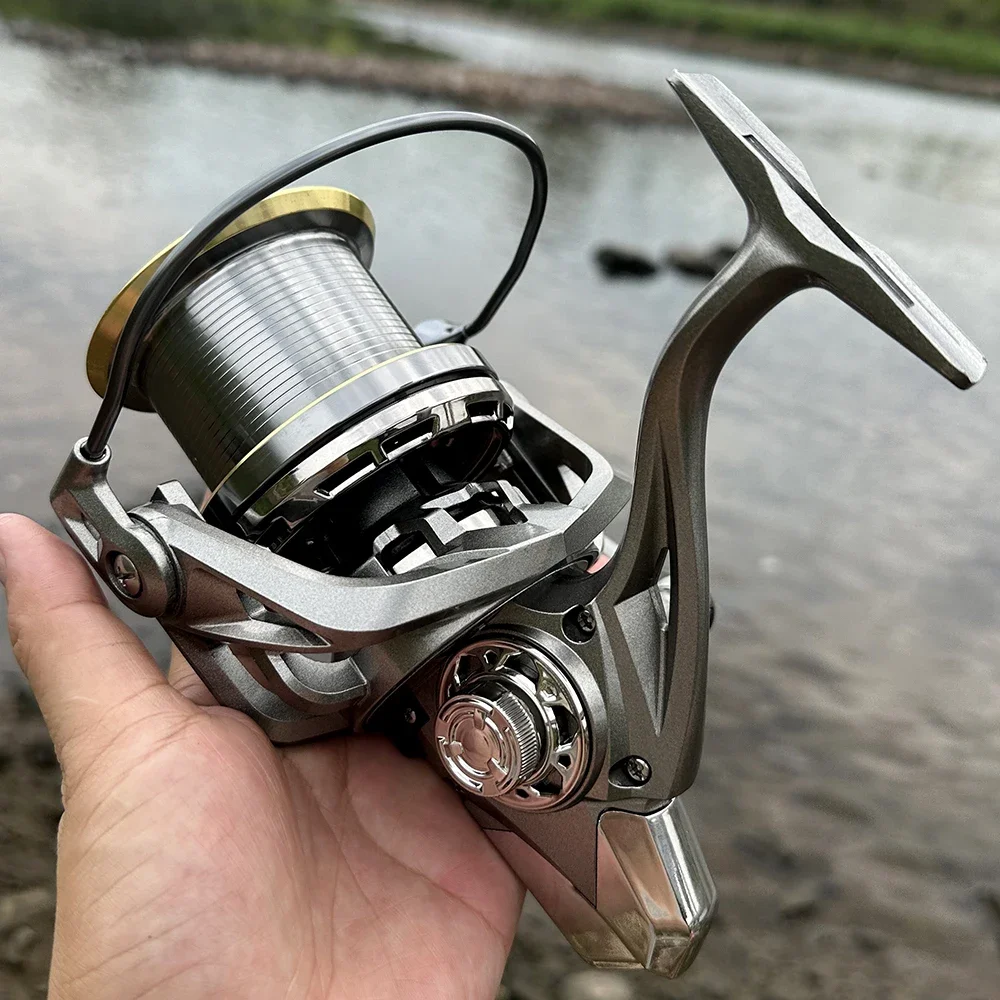 Carrete de pesca giratorio para juegos grandes, carrete de Metal antialgua salada