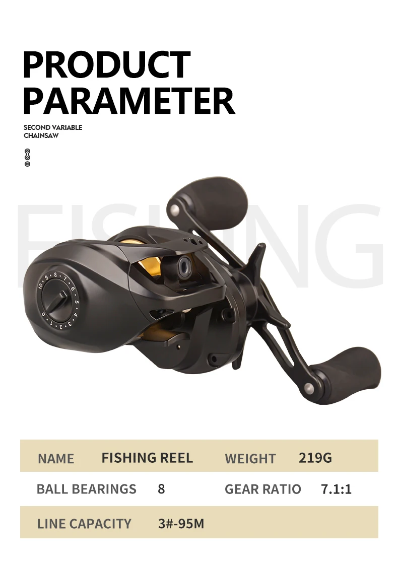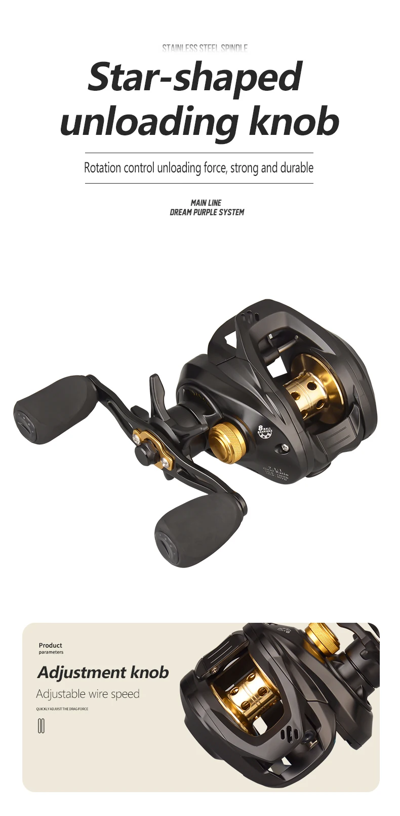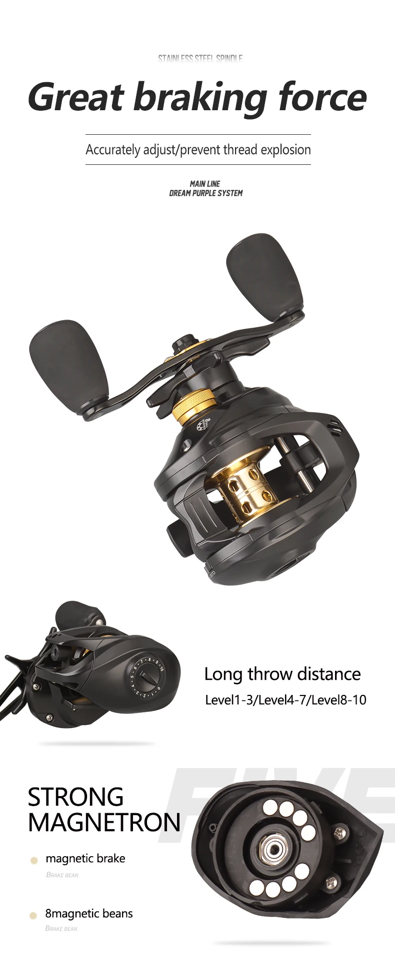 Carrete de pesca Baitcasting, sistema de freno magnético 7,1: 1, de 7KG relación de transmisión, arrastre máximo de 219g, bobina de pesca