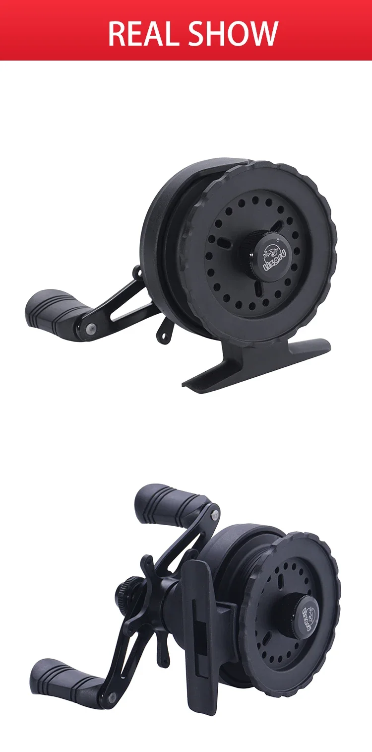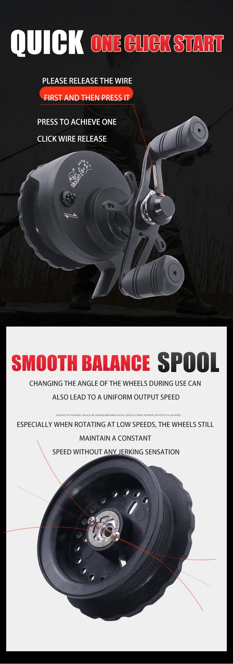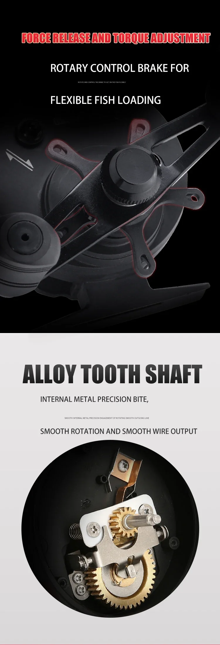 Carrete de pesca con balsa Lizard totalmente negro, relación de velocidad 6 + 1BB y 2,6: 1 con perilla de goma, puede agitar automáticamente la línea
