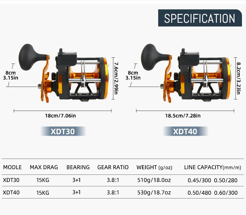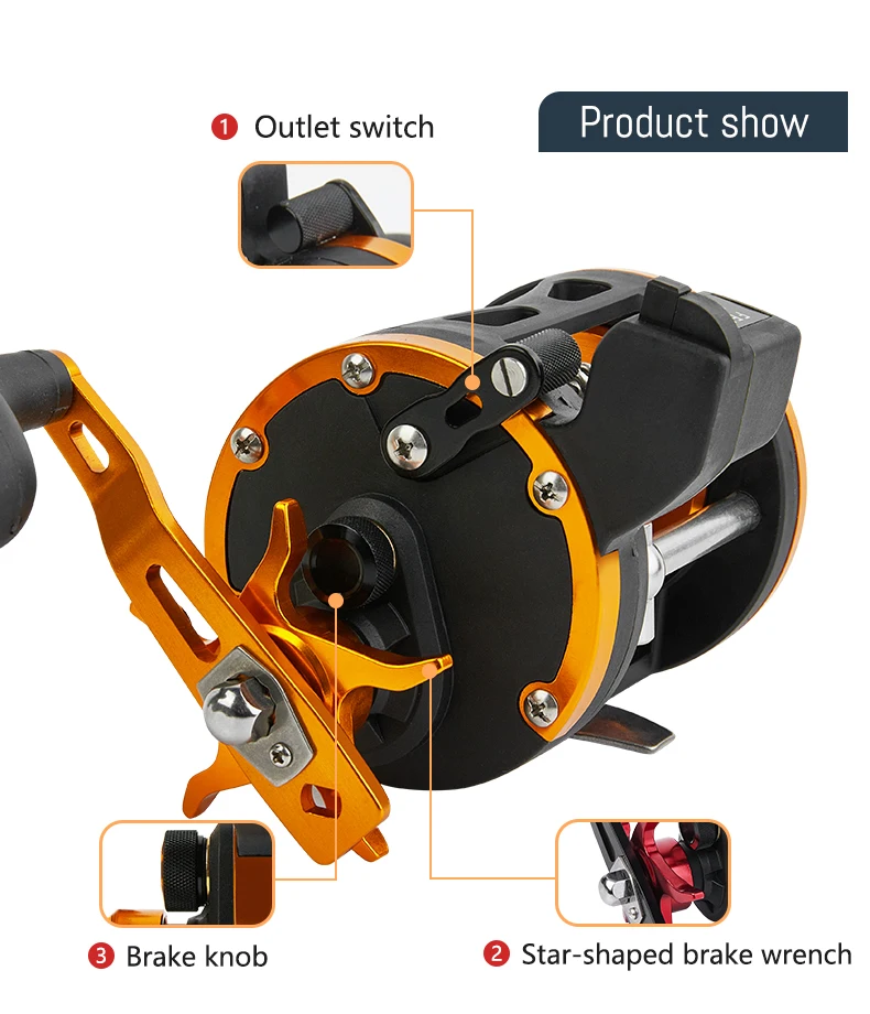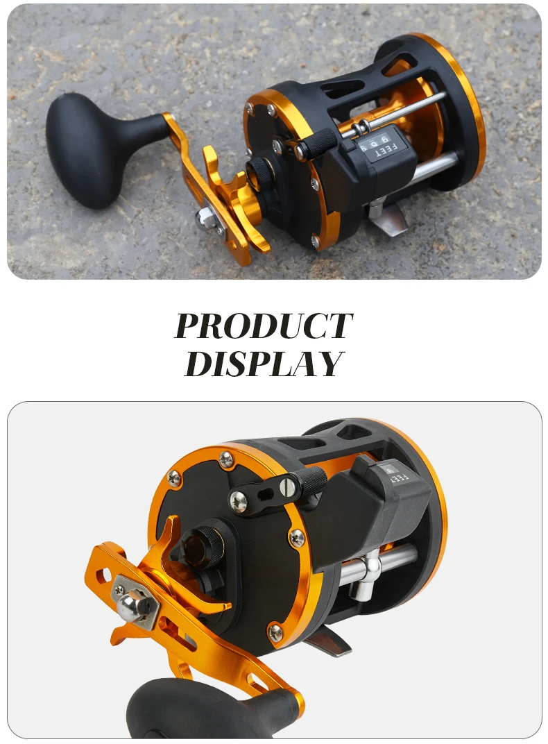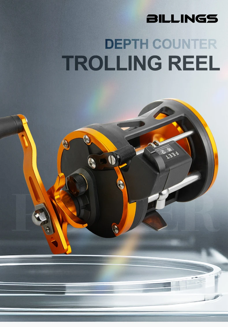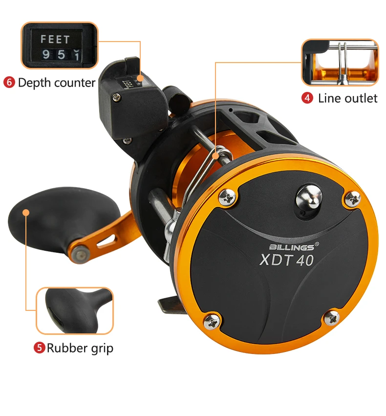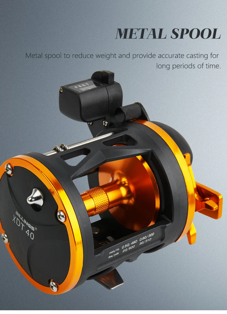 Carrete de pesca BILLINGS, contador de línea, carrete de mar de fundición a mano derecha, 3,8: 1/3 + 1BB, arrastre máximo, carretes de pesca de agua salada de 15KG