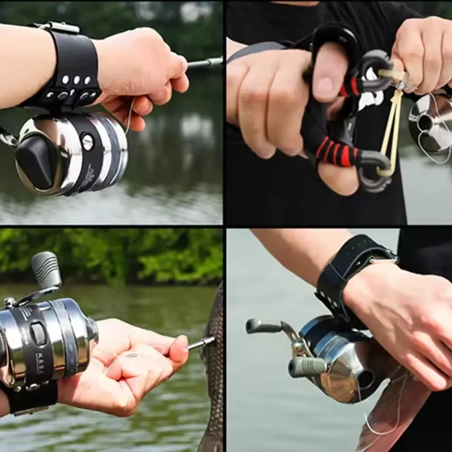 Carrete de pesca BL25 para tiro con tirachinas, rueda de bobina de Metal cerrada para exteriores con 5 # Línea PE 40M Rueda de pesca