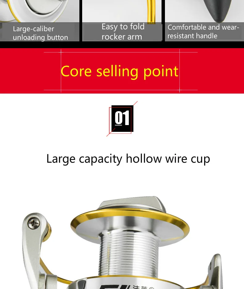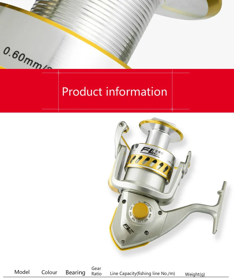 Lista de paquetes:1 x carrete de pesca(No incluye la caña de pescar)