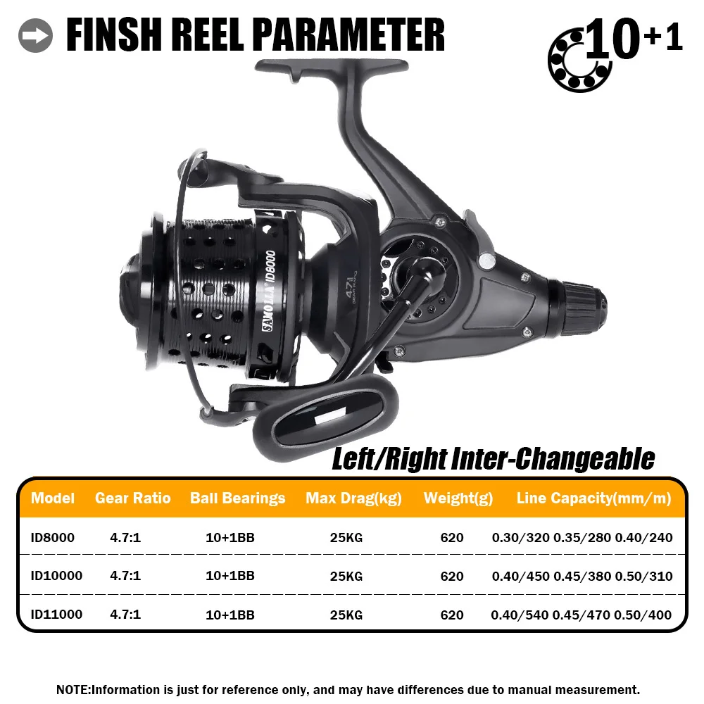Carrete De Pesca De carpa 10 + 1BB 4,7: 1, cuerpo De fibra De carbono para agua salada, bobina De rueda grande lejana, doble arrastre, 25kg