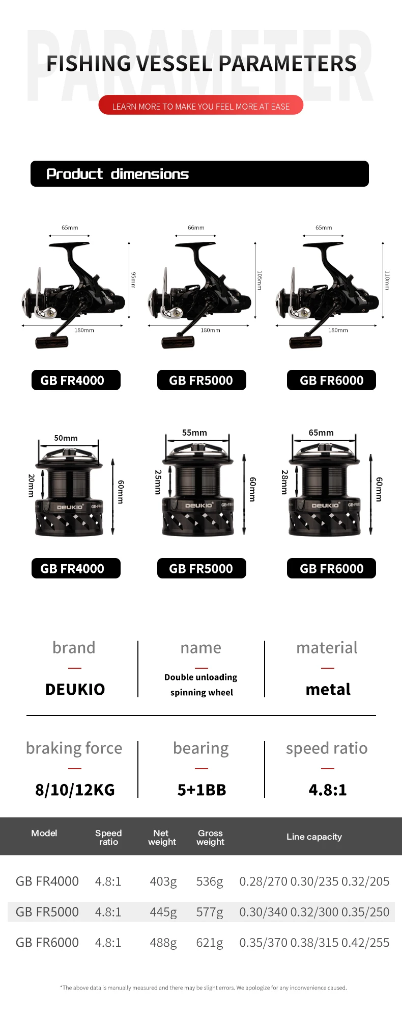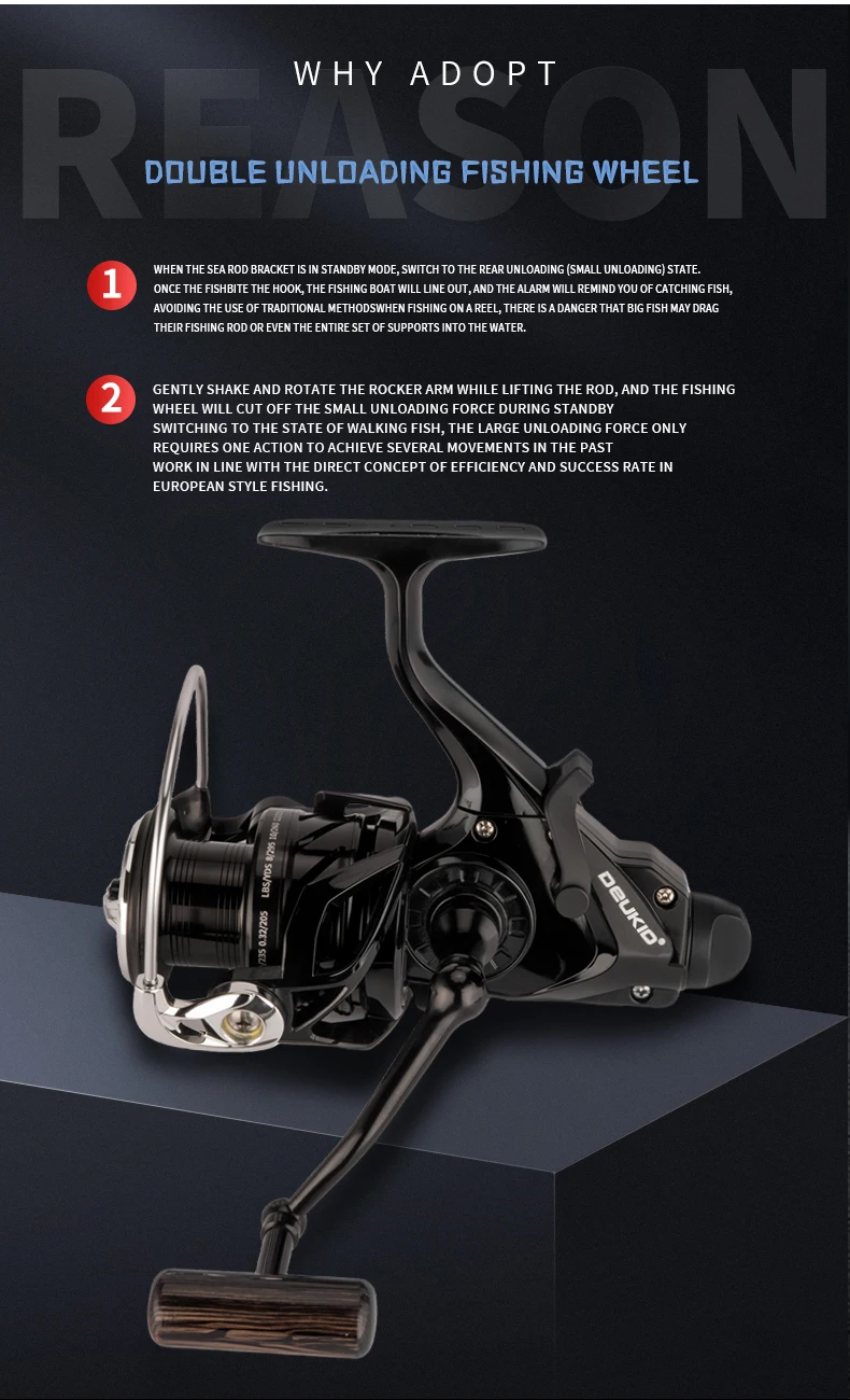 Carrete De Pesca De carpa DEUKIO carrete giratorio Max doble arrastre 8kg 5 + 1BB Carretilha De Pesca Accesorios Mar Peche En Mer sal/agua dulce