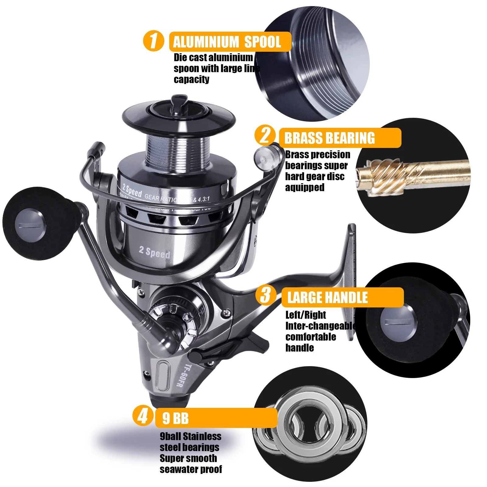 Carrete De Pesca De carpa 2022 giratorio de dos velocidades 6,3: 1/4.3:1 doble freno 20kg accesorios De arrastre bobina de cara abierta Carretilha De Pesca