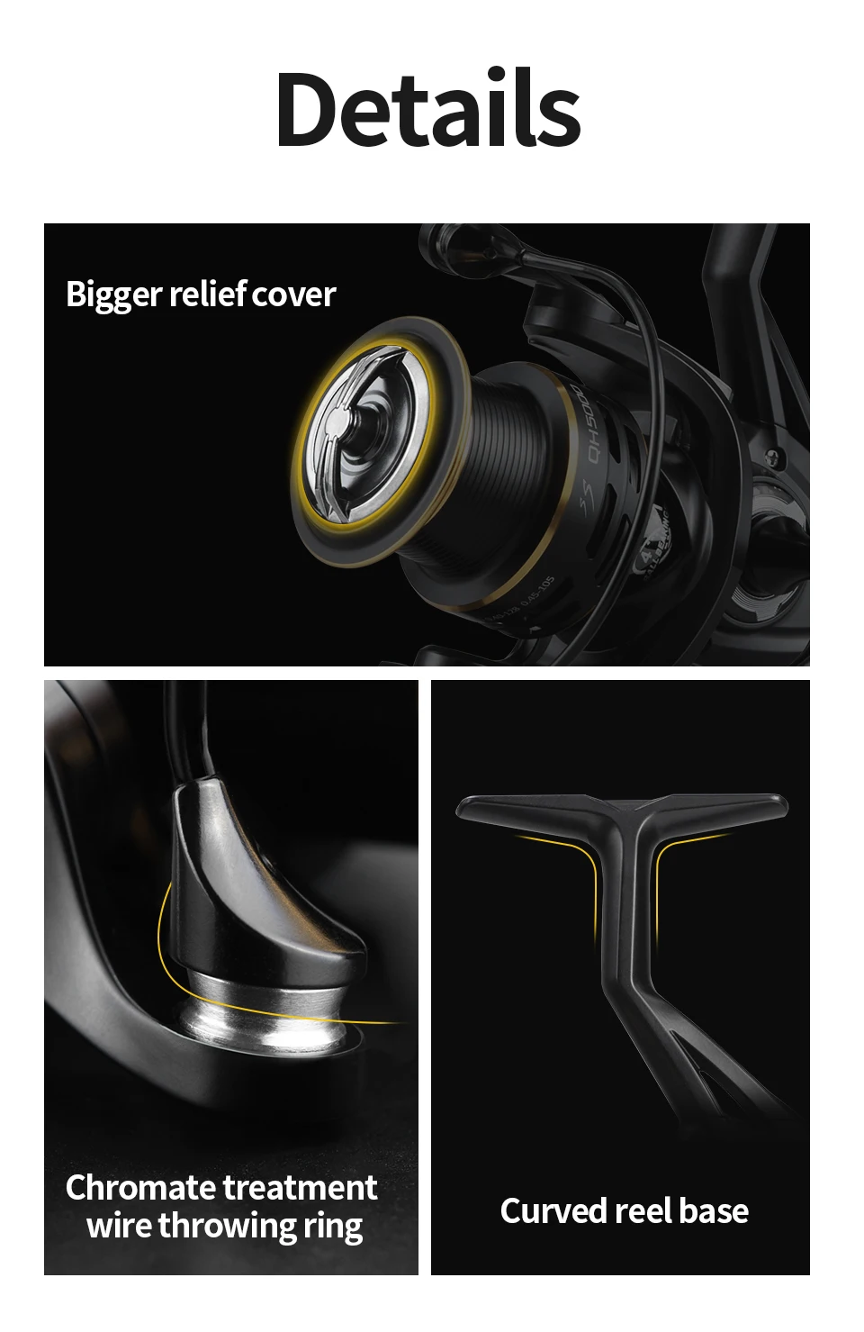 Parece ser el mejor carrete de pesca que he usado hasta ahora. También cuenta con un doble cierre, lo cual es práctico y ofrece una sensación agradable al tacto. Siento que el precio es accesible y la calidad del producto es muy buena.
