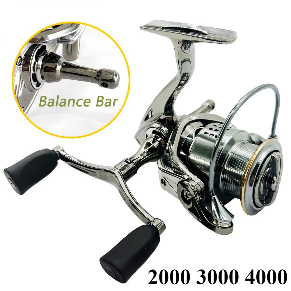 Carrete de pesca de carrete de Metal 2000-4000, doble brazo basculante, relación de engranaje, rueda de pescado de fundición larga 5,2: 1, accesorios de carrete de pesca resistentes al desgaste