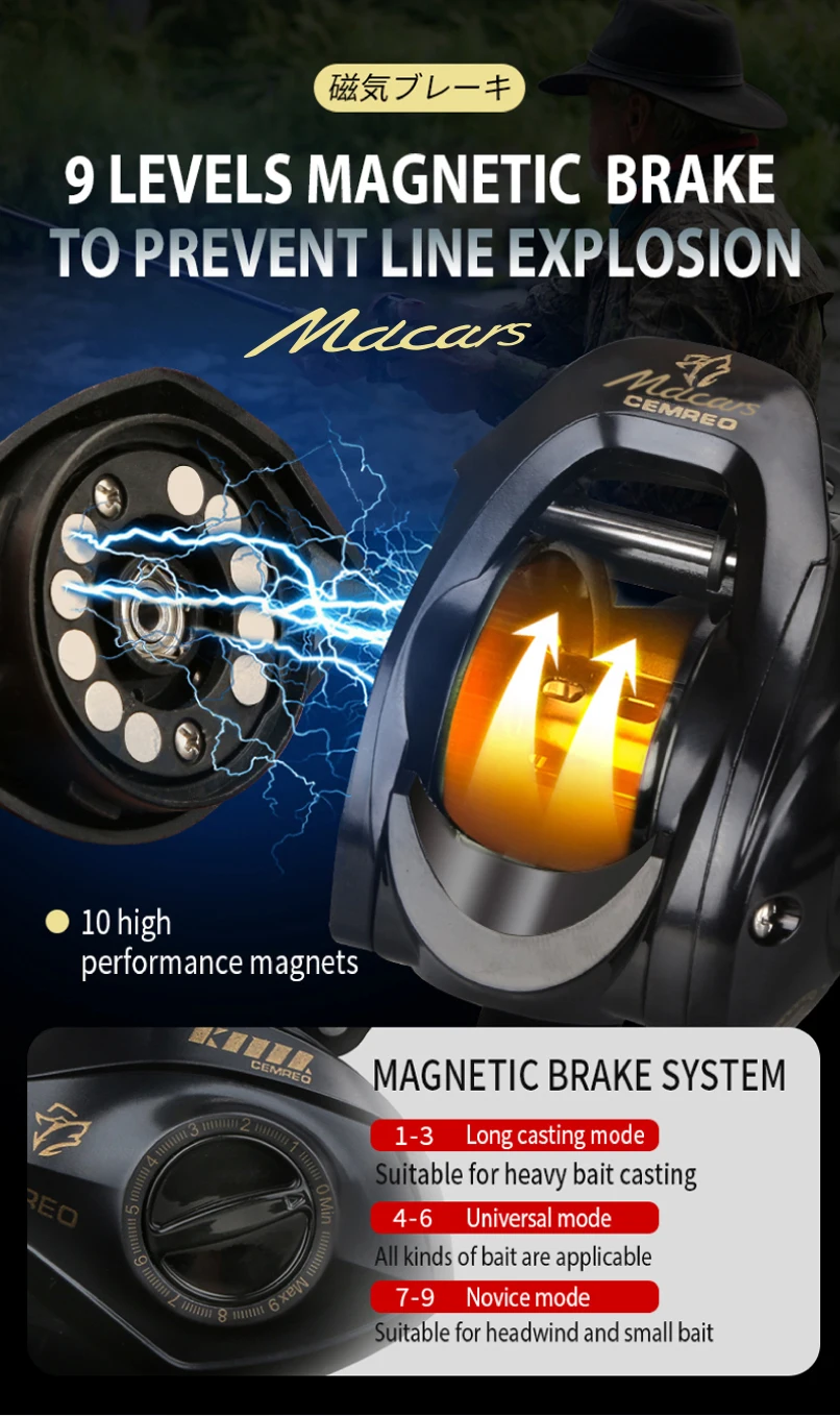 Carrete de pesca CEMREO Bait Casting 9kg arrastre 7,0: 1 carrete Universal/poco de alta velocidad para pesca modelo:MACARS