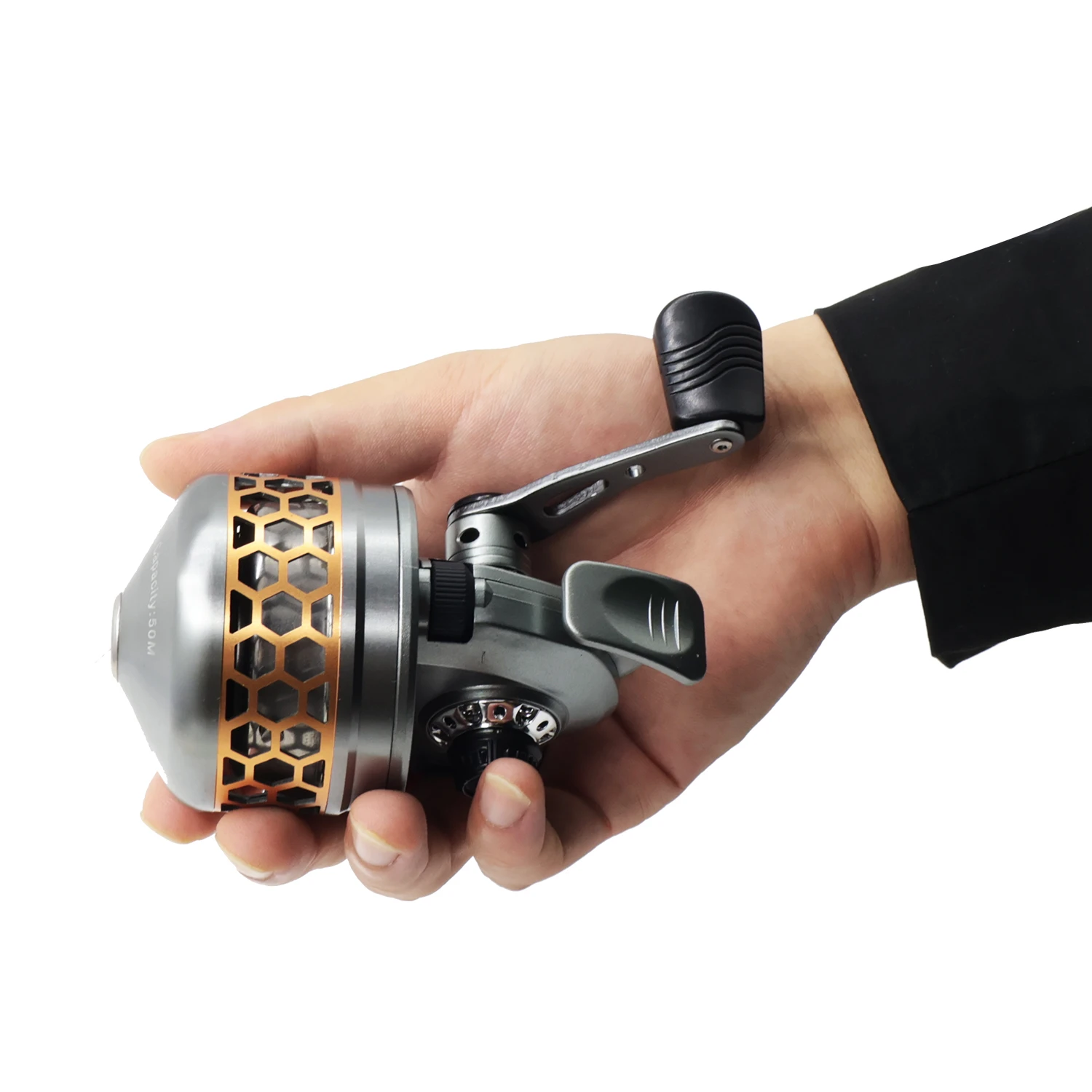 Hay un carrete redondo en la parte delantera del carrete con múltiples orificios pequeños para reducir el peso y optimizar el rendimiento del hilo.La manivela se puede ajustar hacia la izquierda y hacia la derecha.