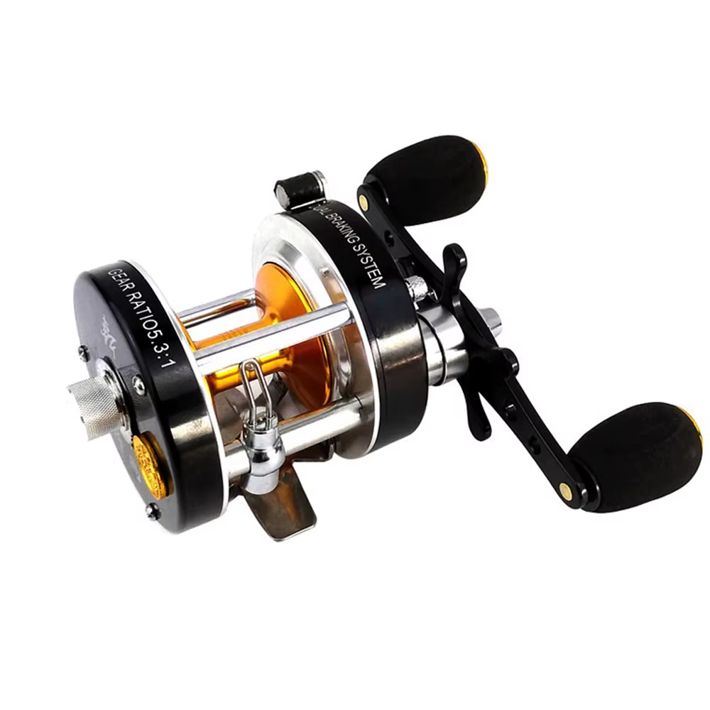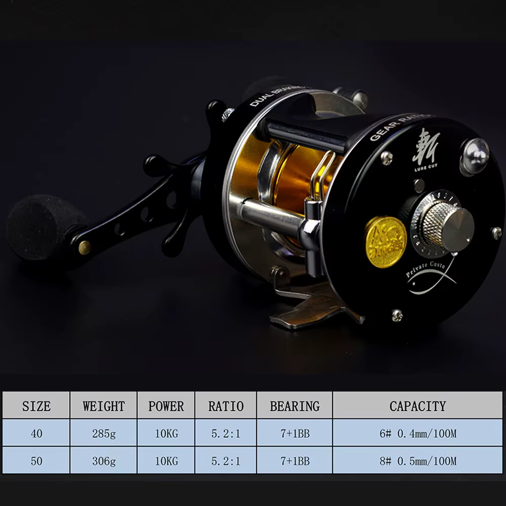 Carrete de pesca de curricán con freno centrífugo 5,2: 1, con sonido, clic giratorio, cebo de Metal, fundición, Jigging, barco, tambor, rueda de mar, agua salada