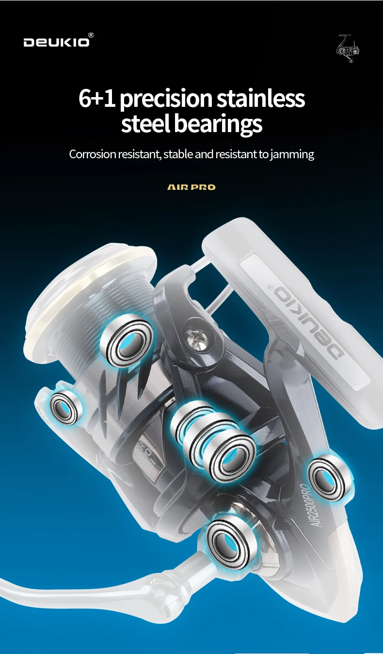 Carrete de pesca DEUKIO 2024 5,2: 1 potencia de arrastre máxima 18 libras carrete de aluminio alarma de pescado carrete giratorio para agua dulce y salada
