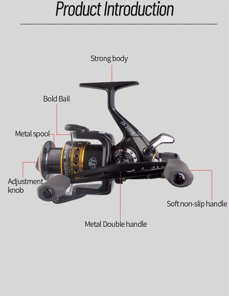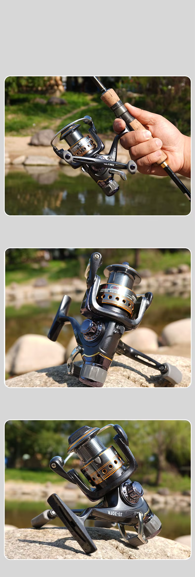 1. Diseño de freno bidireccional, frenado más estable, estructura sin espacios, evitando enredos de hilo de pescar, diseño de cabezal de metal, más resistente, duradero, puede soportar cargas pesadas;