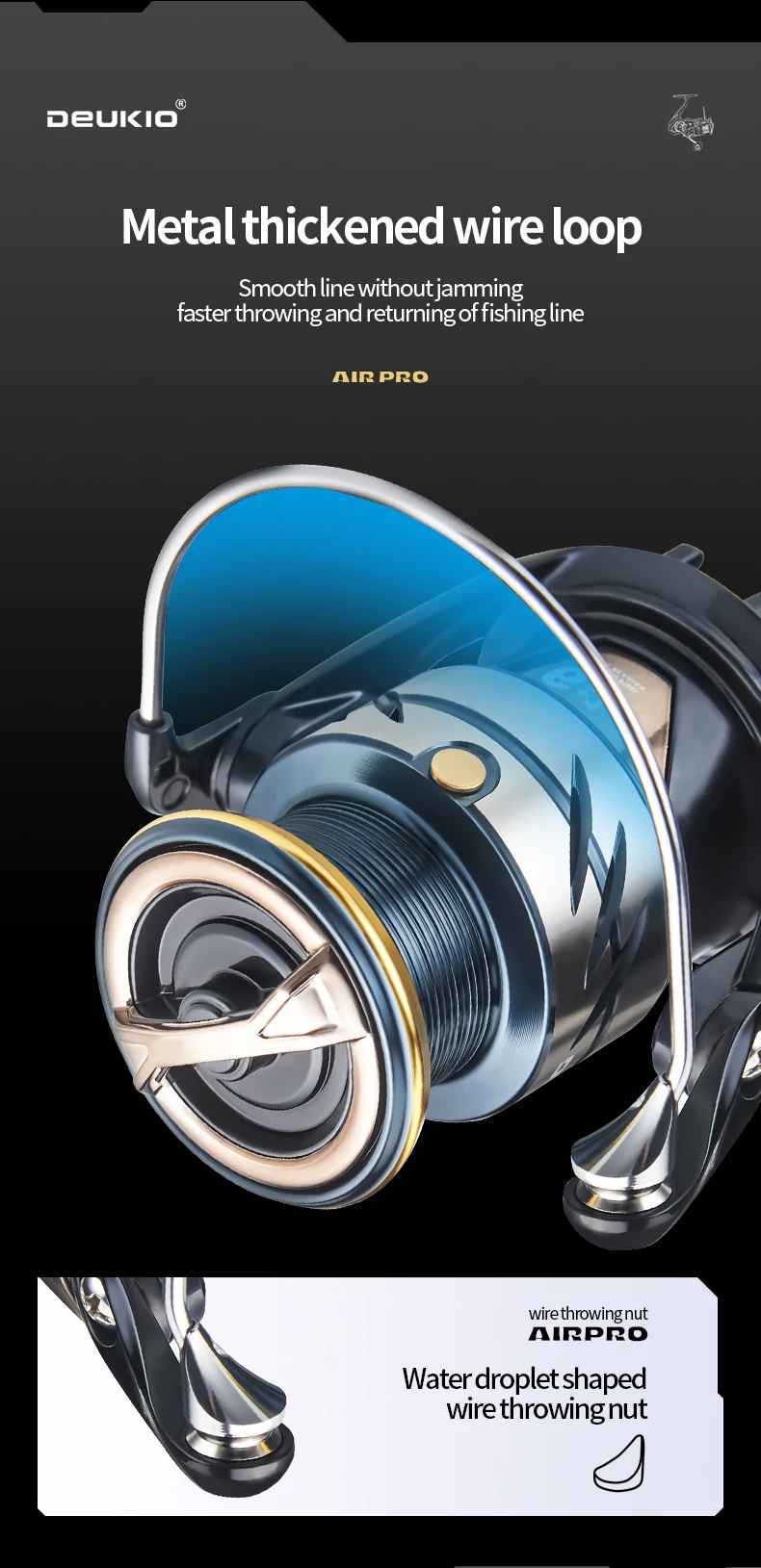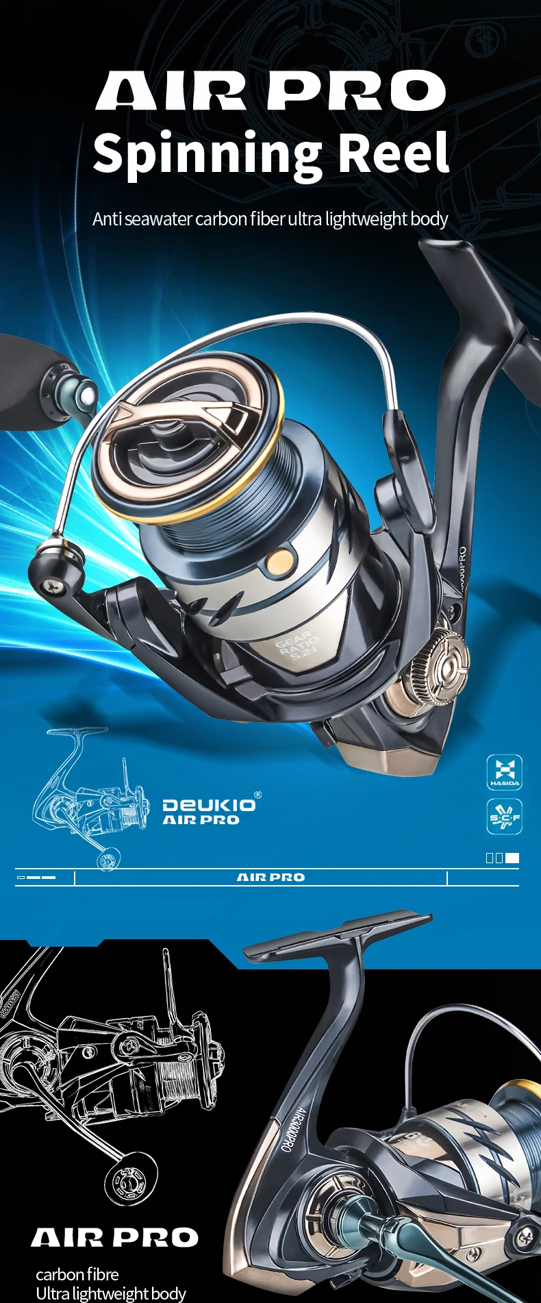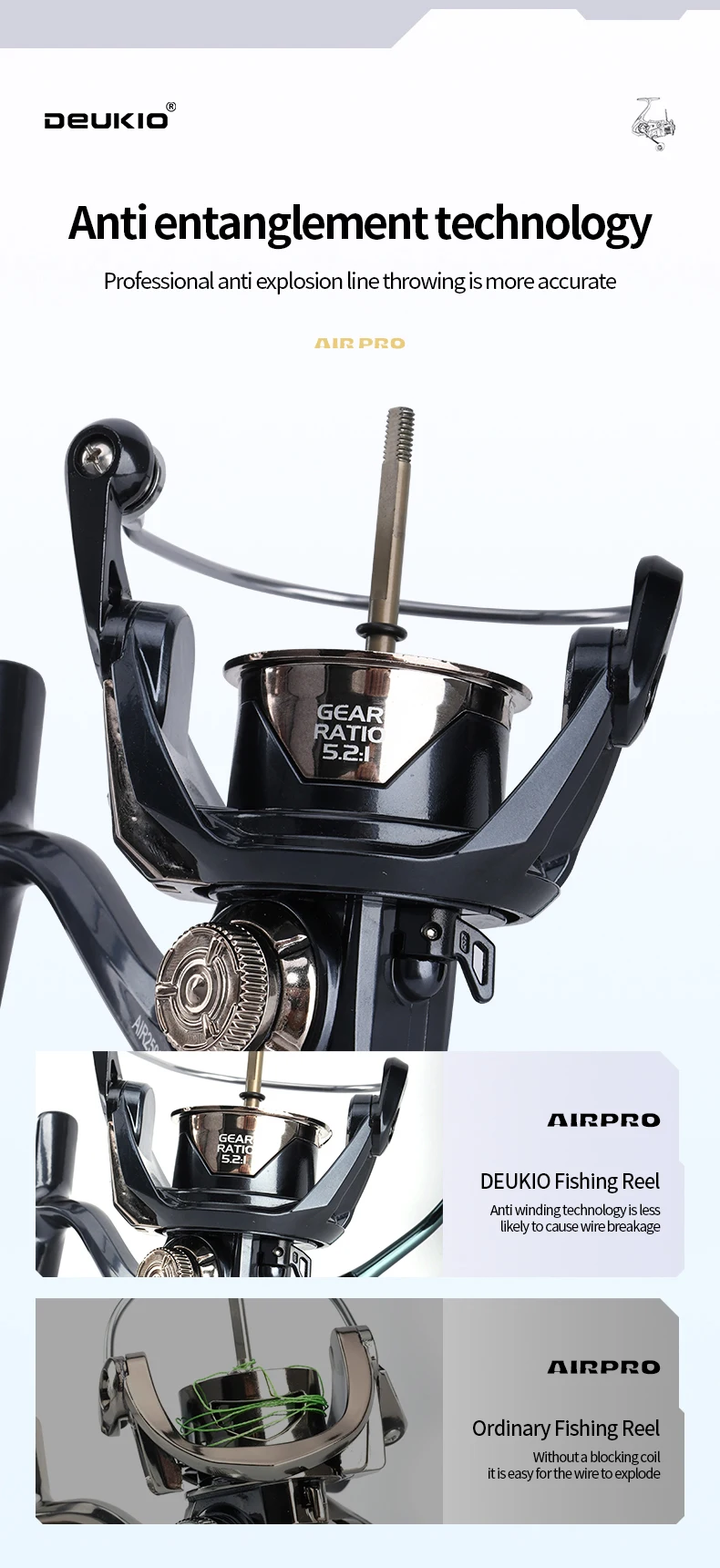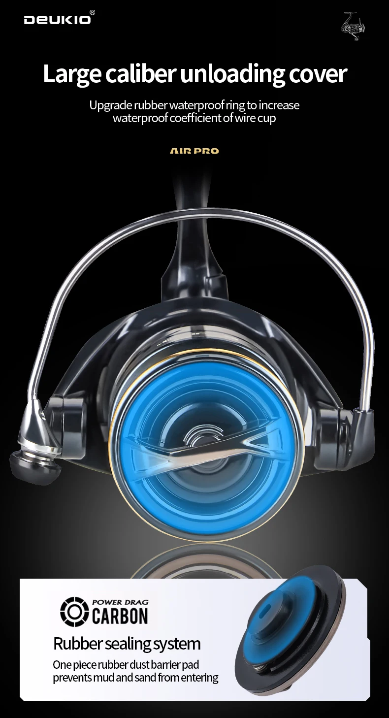 Carrete de pesca DEUKIO sin óxido y suave 5,2: 1, cuerpo principal ultraligero de fibra de carbono, rueda giratoria de potencia máxima de 8Kg, bobina de pesca