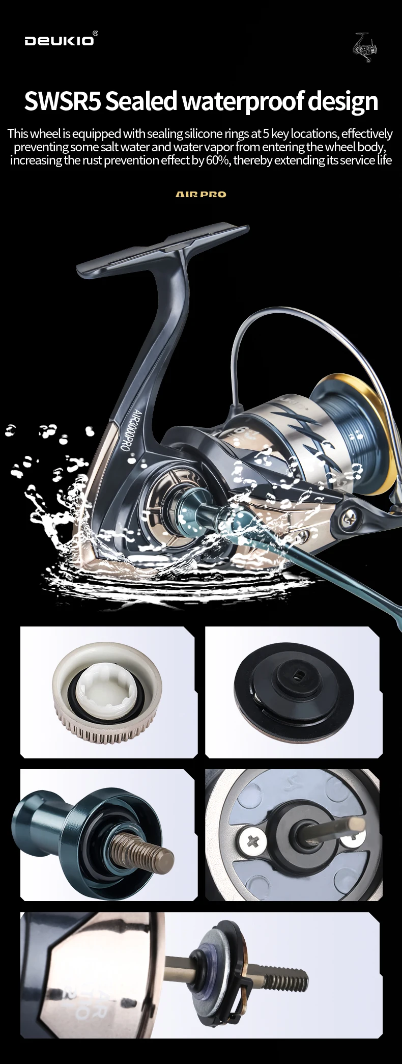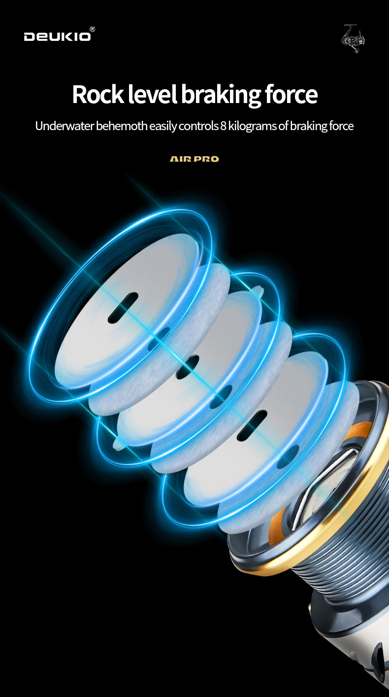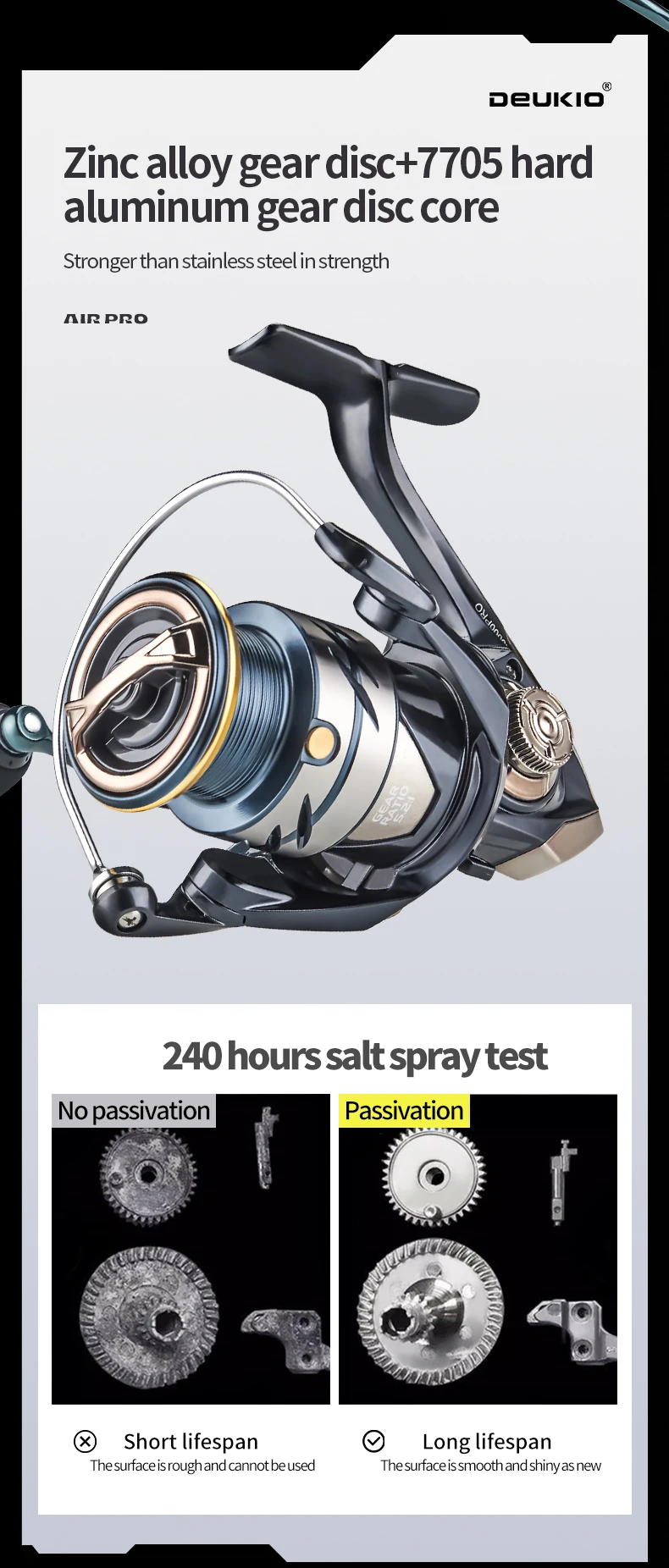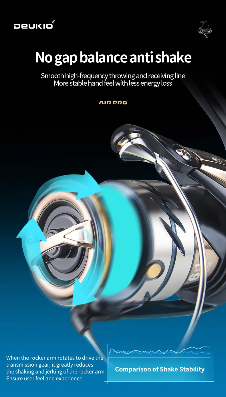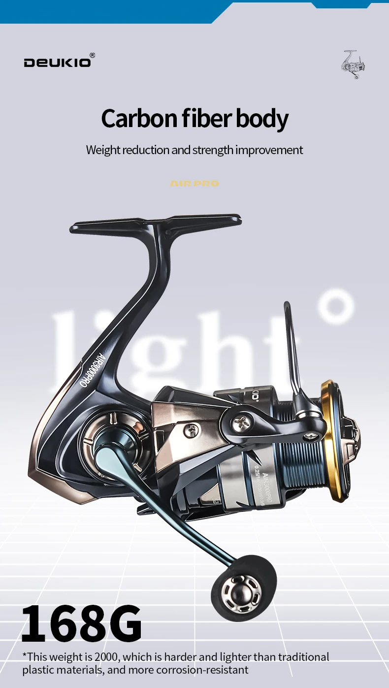 Carrete de pesca DEUKIO sin óxido y suave 5,2: 1, cuerpo principal ultraligero de fibra de carbono, rueda giratoria de potencia máxima de 8Kg, bobina de pesca