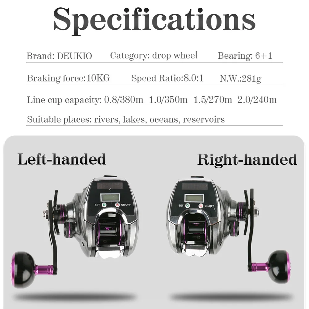 Nuevo carrete de pesca con pantalla LED Digital, cebo de fundición 6 + 1BB 10kg, fuerza de frenado 8,0: 1, relación de velocidad, mango de Metal, carrete de Baitcasting.