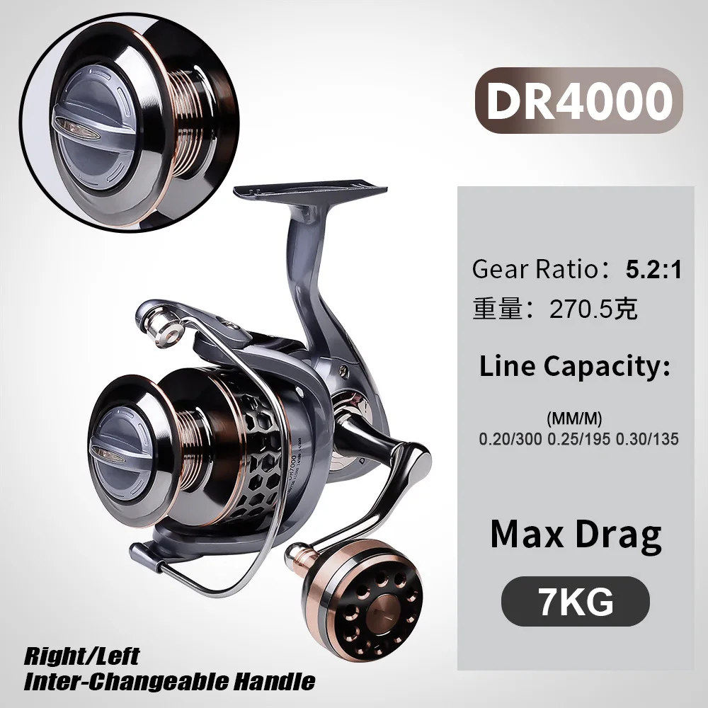 Carrete de pesca con copa de línea de Metal DR, ruedas de distribución LUYA, carretes de caña de mar, rueda giratoria de descarga delantera 3BB, potencia de tracción de 5 a 10 kg