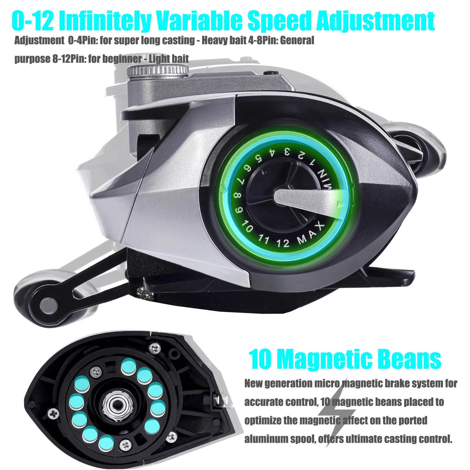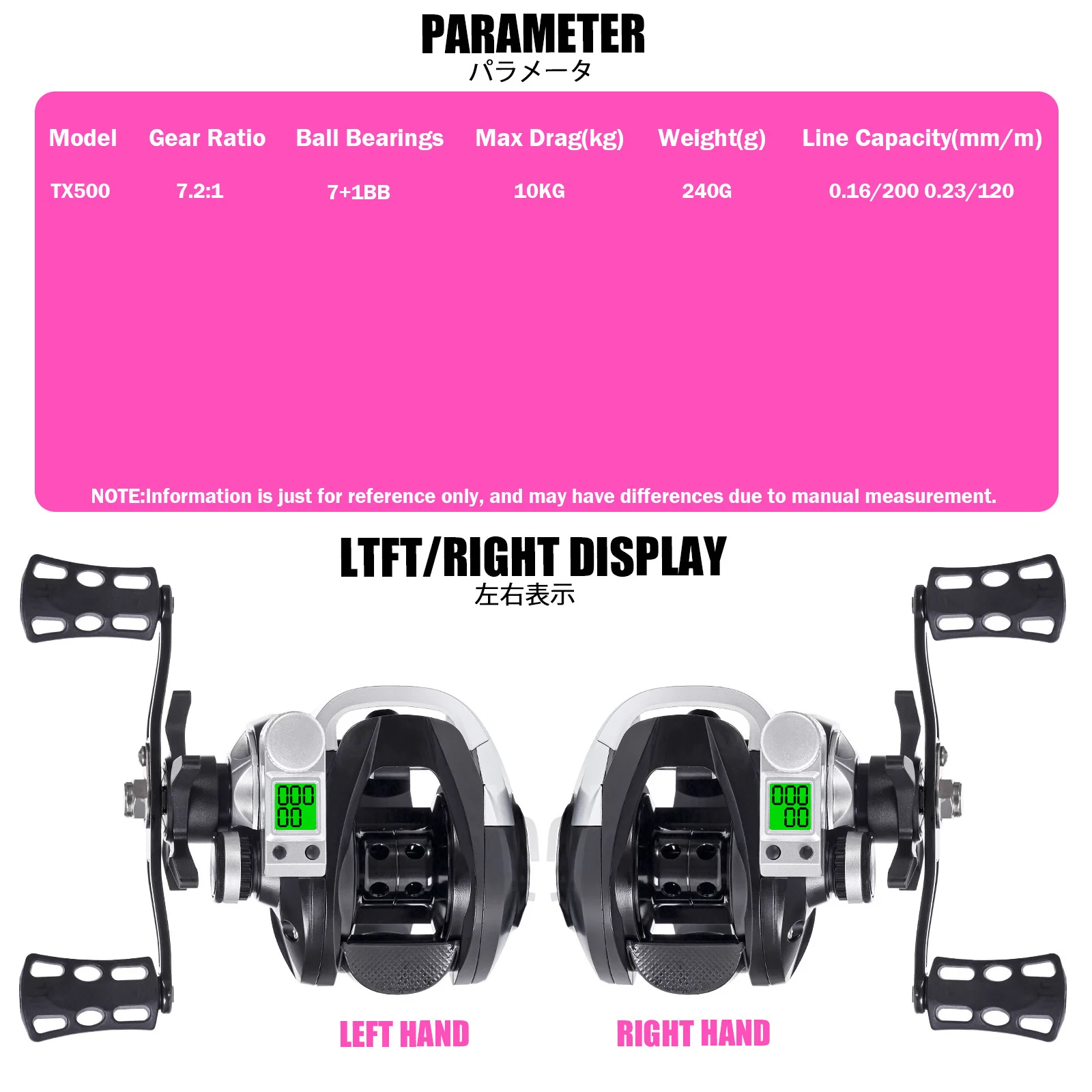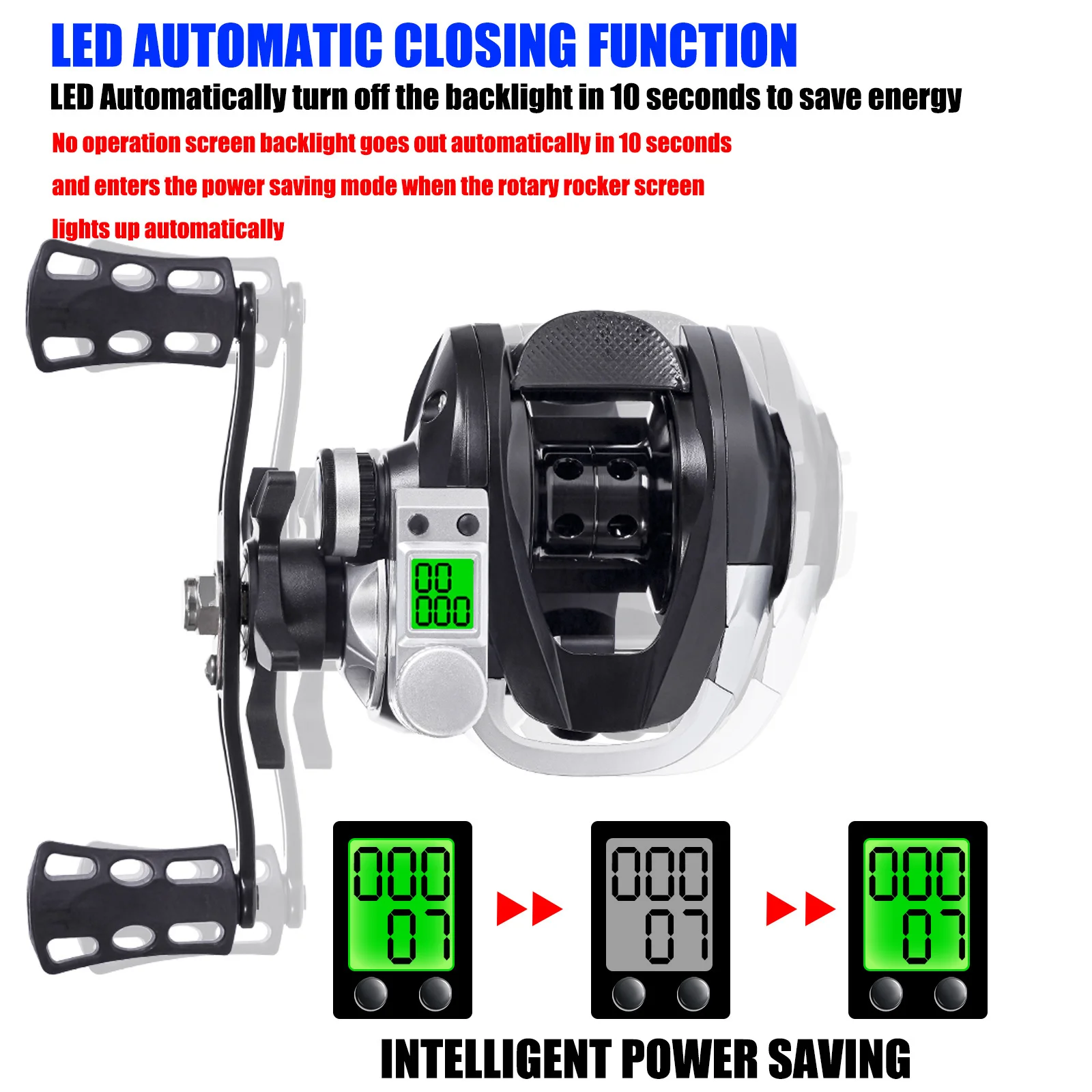 Carrete de pesca electrónico con pantalla Led, Baitcasting carrete de pesca de alta velocidad, 7,2: 1, 10kg, impermeable, tambor de fundición de agua salada, Moulinet