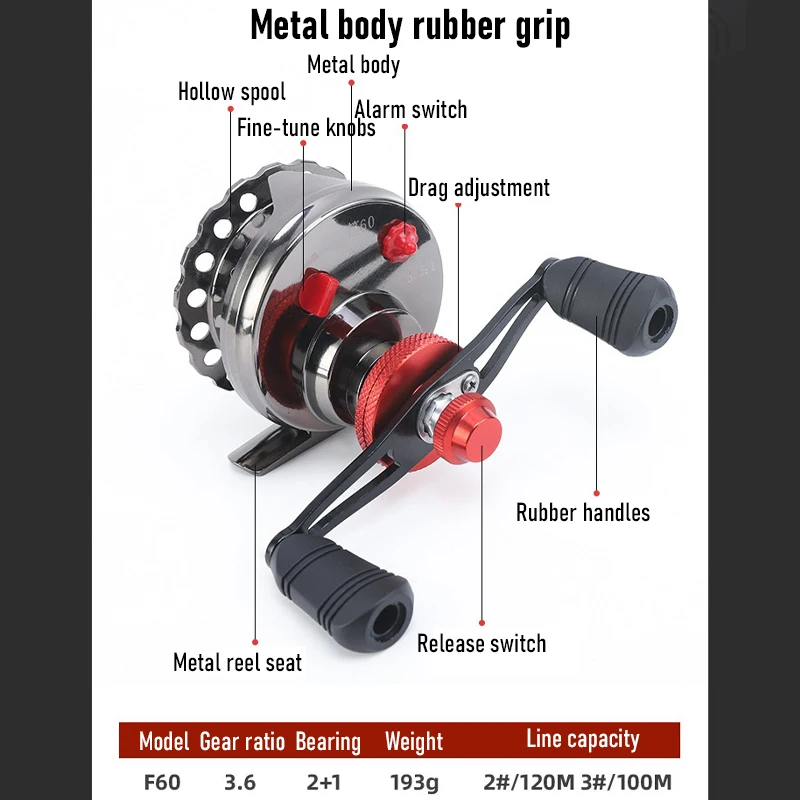 1. El carrete de hielo presenta un cuerpo de metal de alta resistencia que garantiza la dureza y la durabilidad necesarias en los duros elementos de invierno.