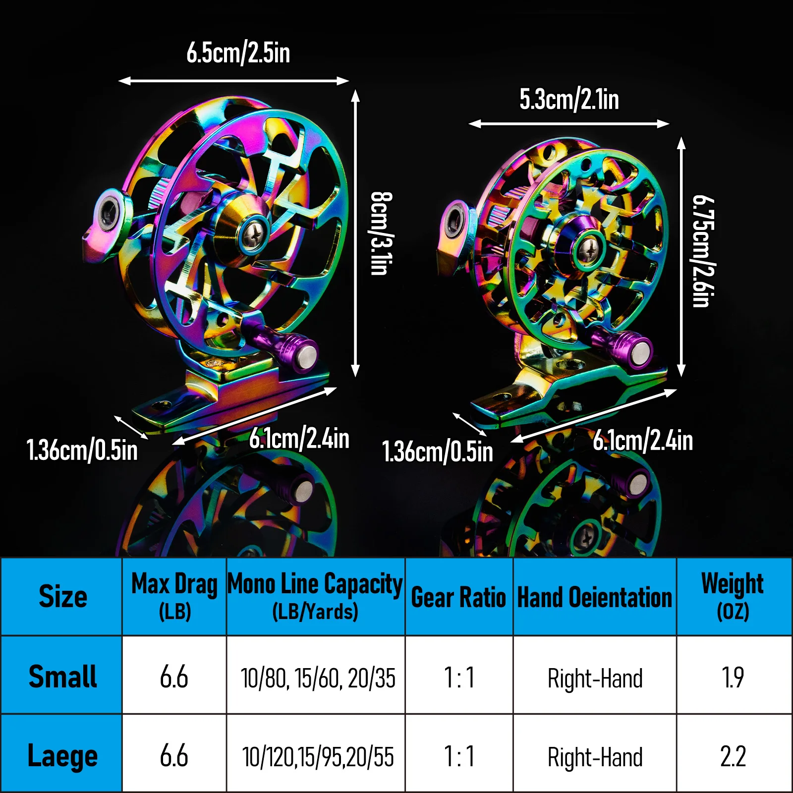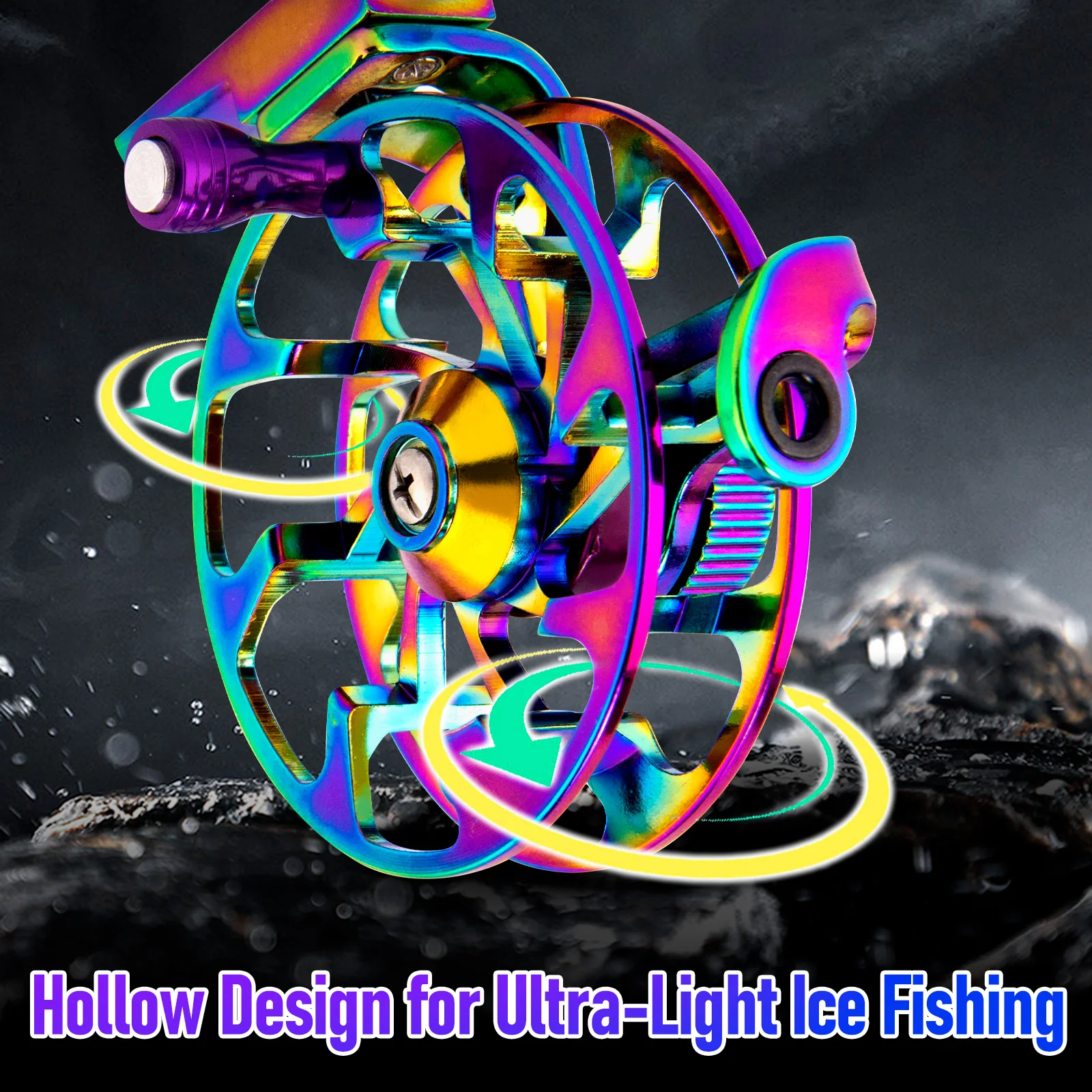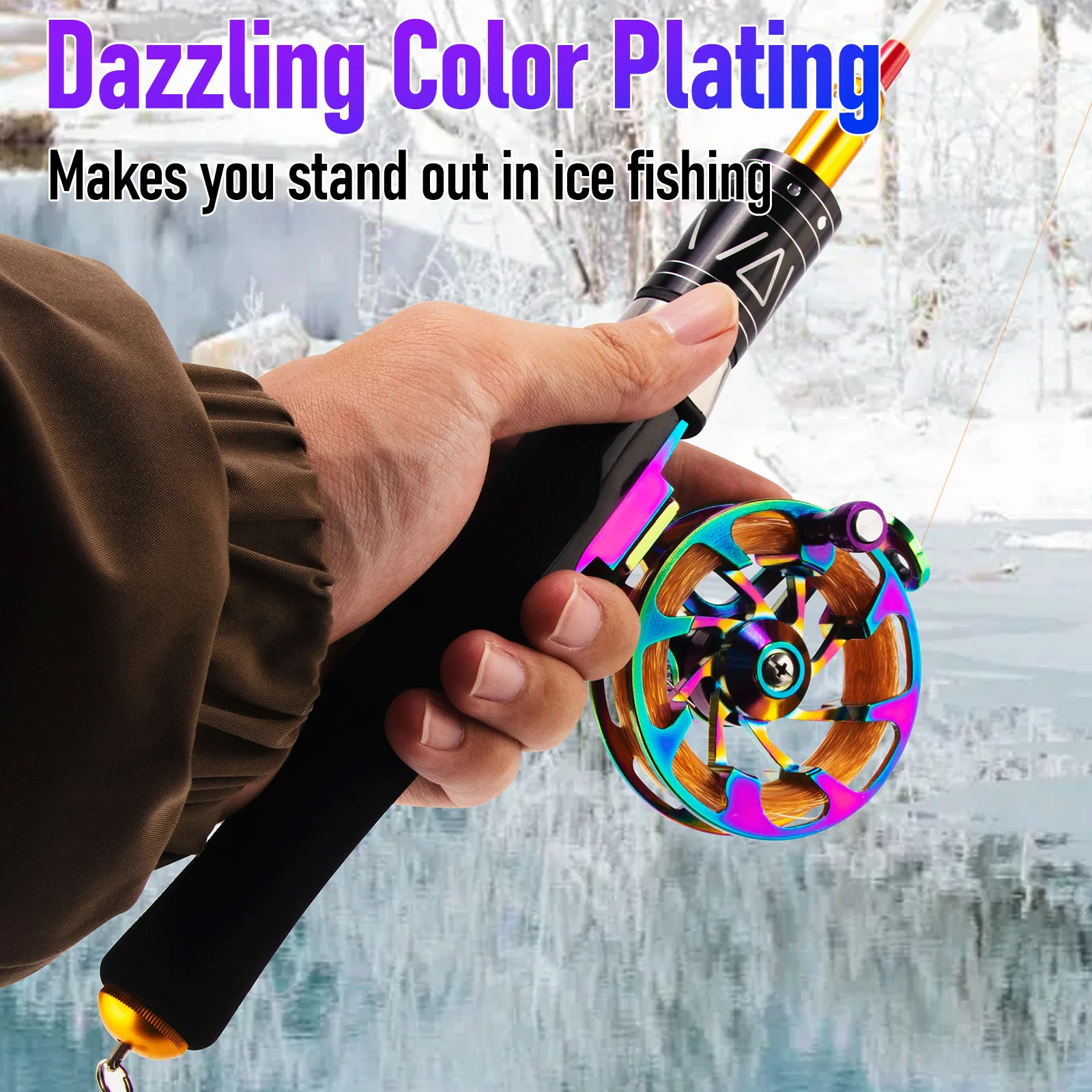 CARRETE DE PESCA DE HIELO DAZZLING: El material avanzado de aleación de aluminio CNC de calidad aeronáutica garantiza resistencia, durabilidad y resistencia a la corrosión al tiempo que reduce el peso.El revestimiento de colores deslumbrantes te hace destacar en la pesca en hielo.