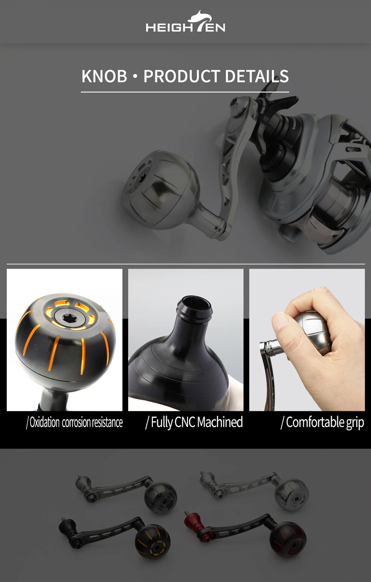 Carrete de pesca de fibra de carbono HEIGHTEN, rueda giratoria de fundición única, manivela de mano, cigüeñal de rueda de pesca de un solo agarre redondo