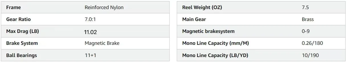 Ligero: la estructura de este carrete baitcaster está diseñada para ser liviana.El uso de material de nailon de alta tensión para el cuerpo mantiene una alta resistencia y al mismo tiempo reduce su peso.Relación de engranaje de alta velocidad 7,0:1, pesa solo 0,215 kg.