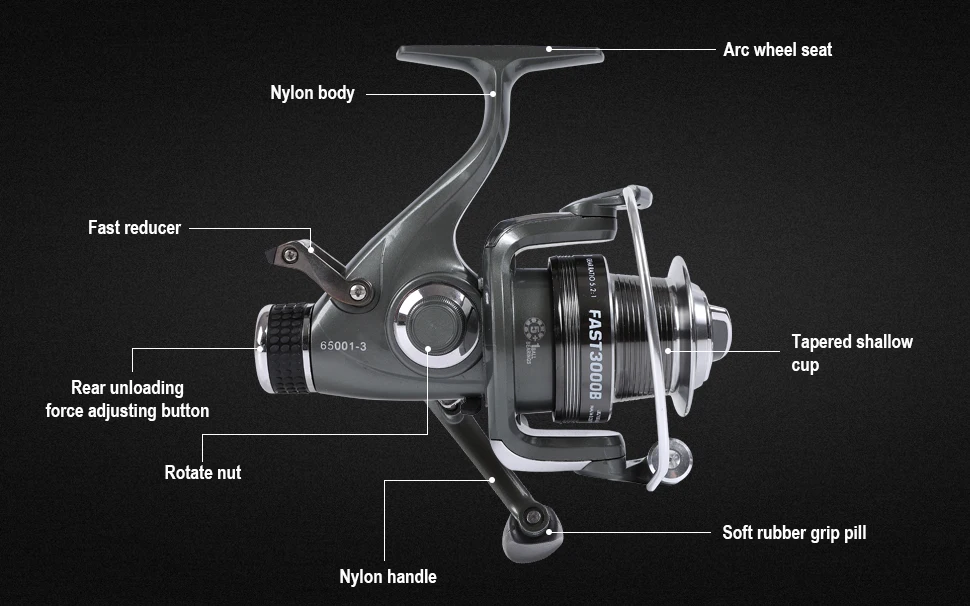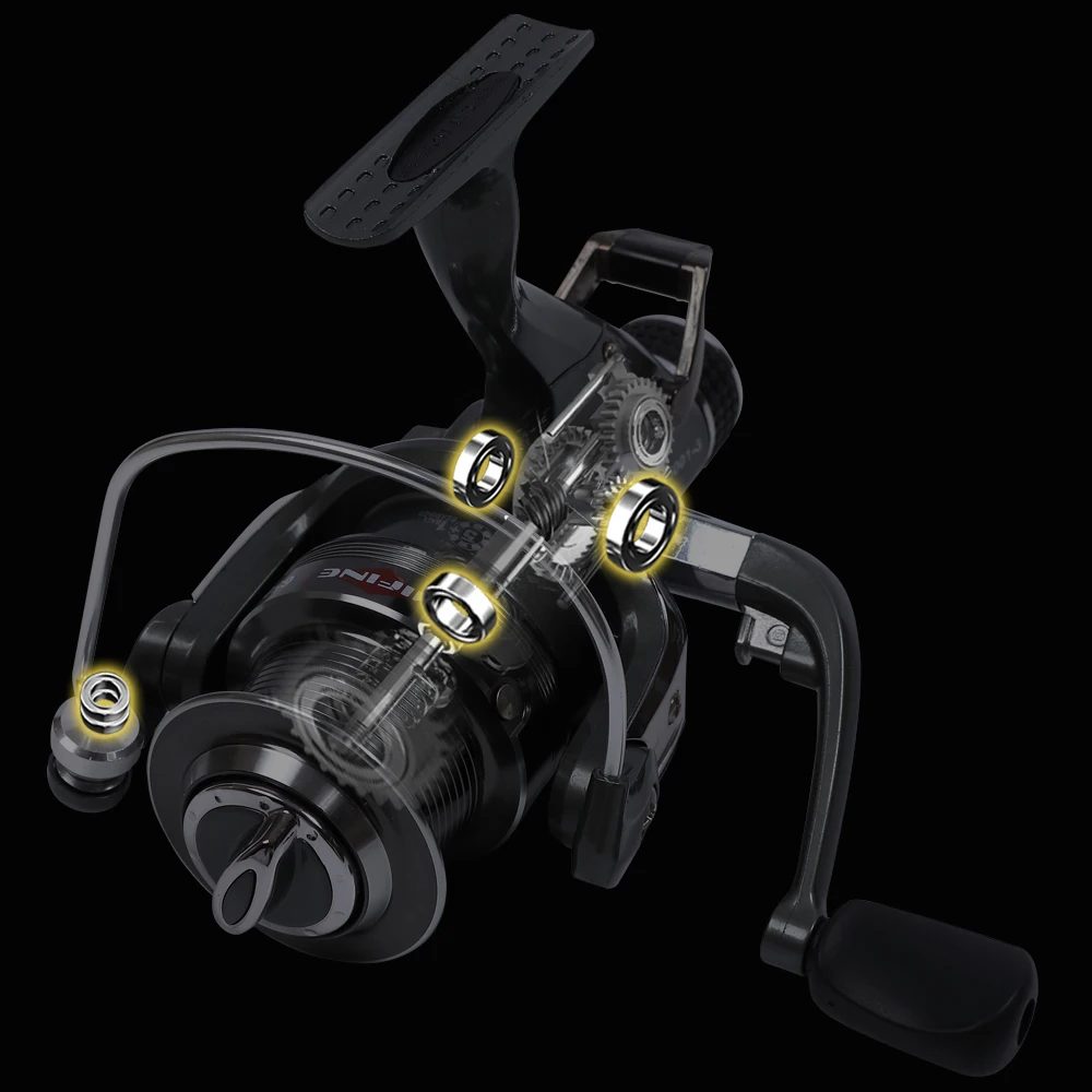 ● Sistema de doble freno: carrete giratorio rápido Mifine diseñado con sistema de descarga delantera y trasera, triple arrastre de lana con una fuerza de frenado máxima de hasta 6kg.