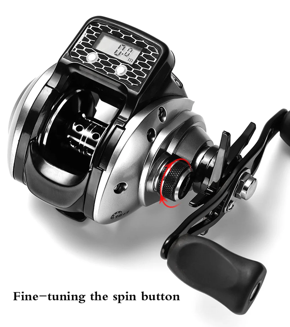 Con función de contador de línea, la pantalla digital mide la longitud de la línea en metros y el número de bobinado de línea.