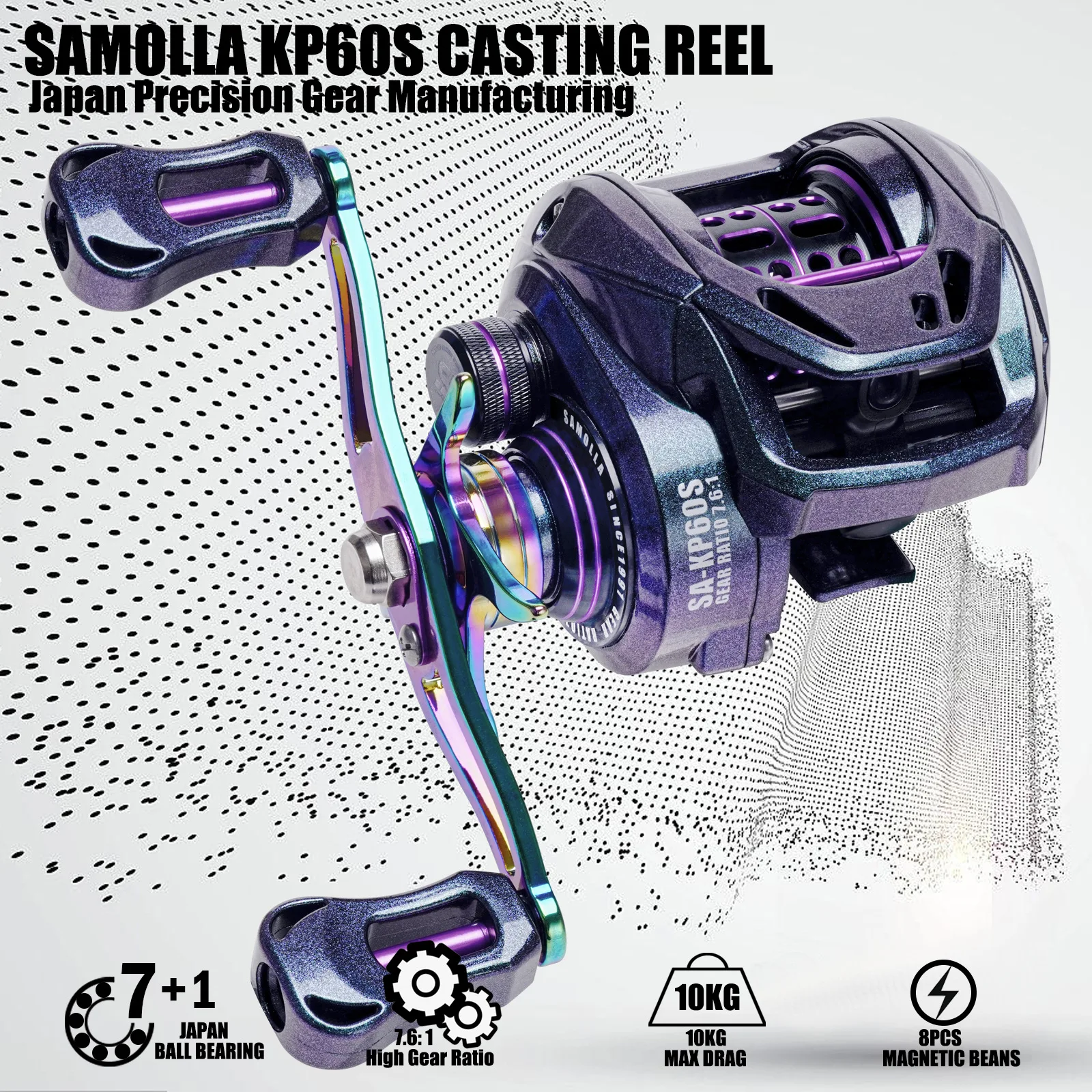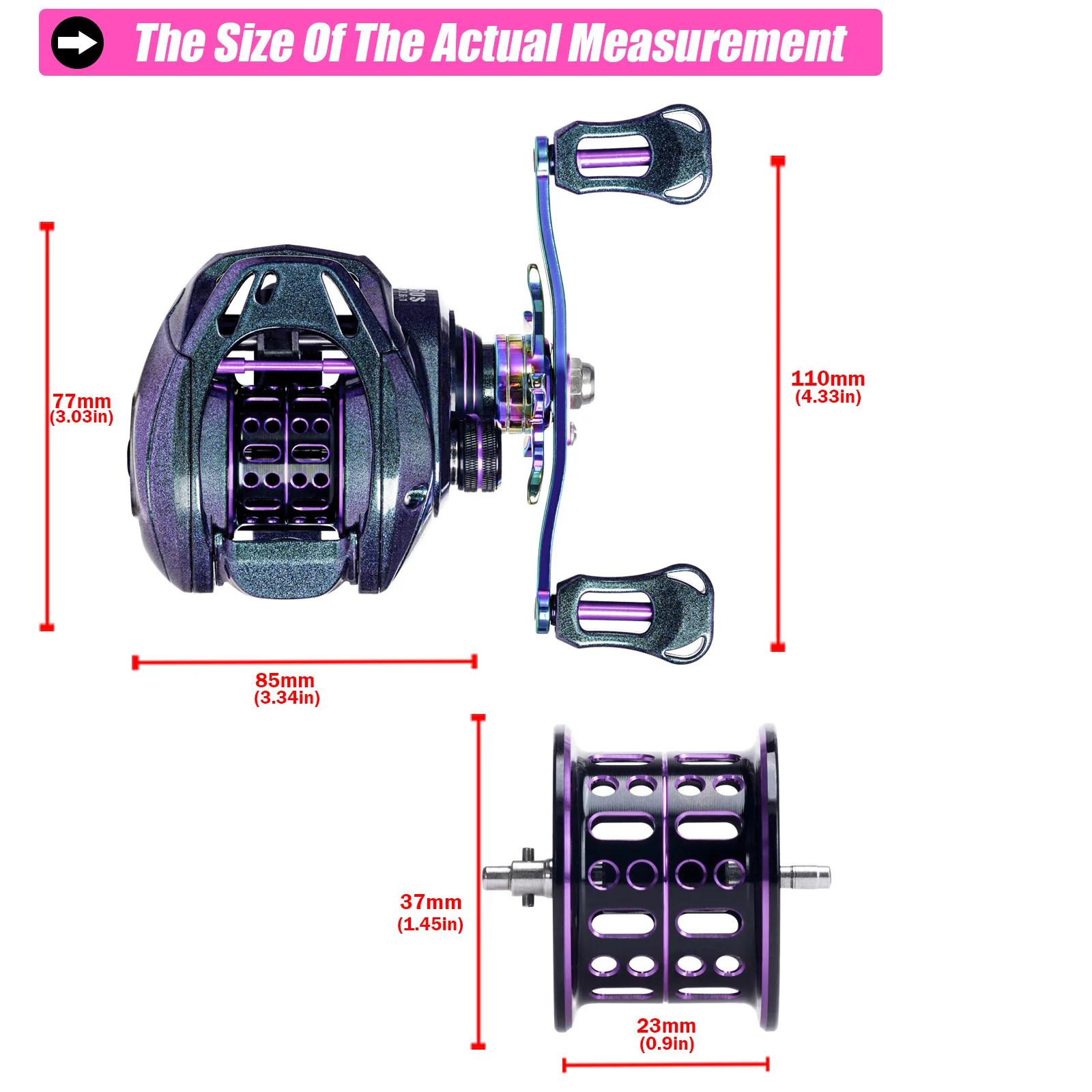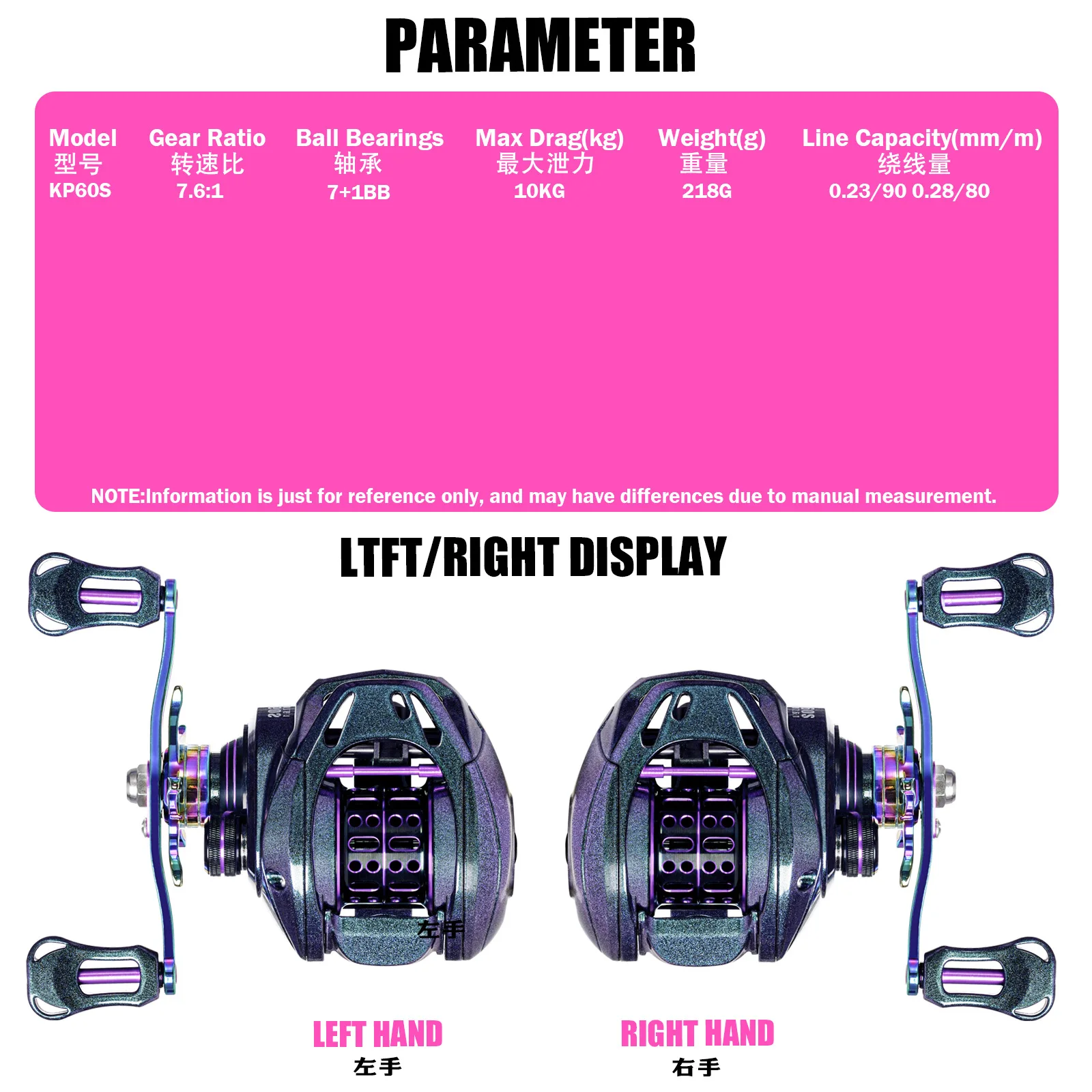 Carrete de pesca de fundición de cebo de alta velocidad, cebos ligeros, tiro largo, CNC, carrete de eje corto, arrastre máximo de 10 kg, aleación de aluminio, 7,6:1
