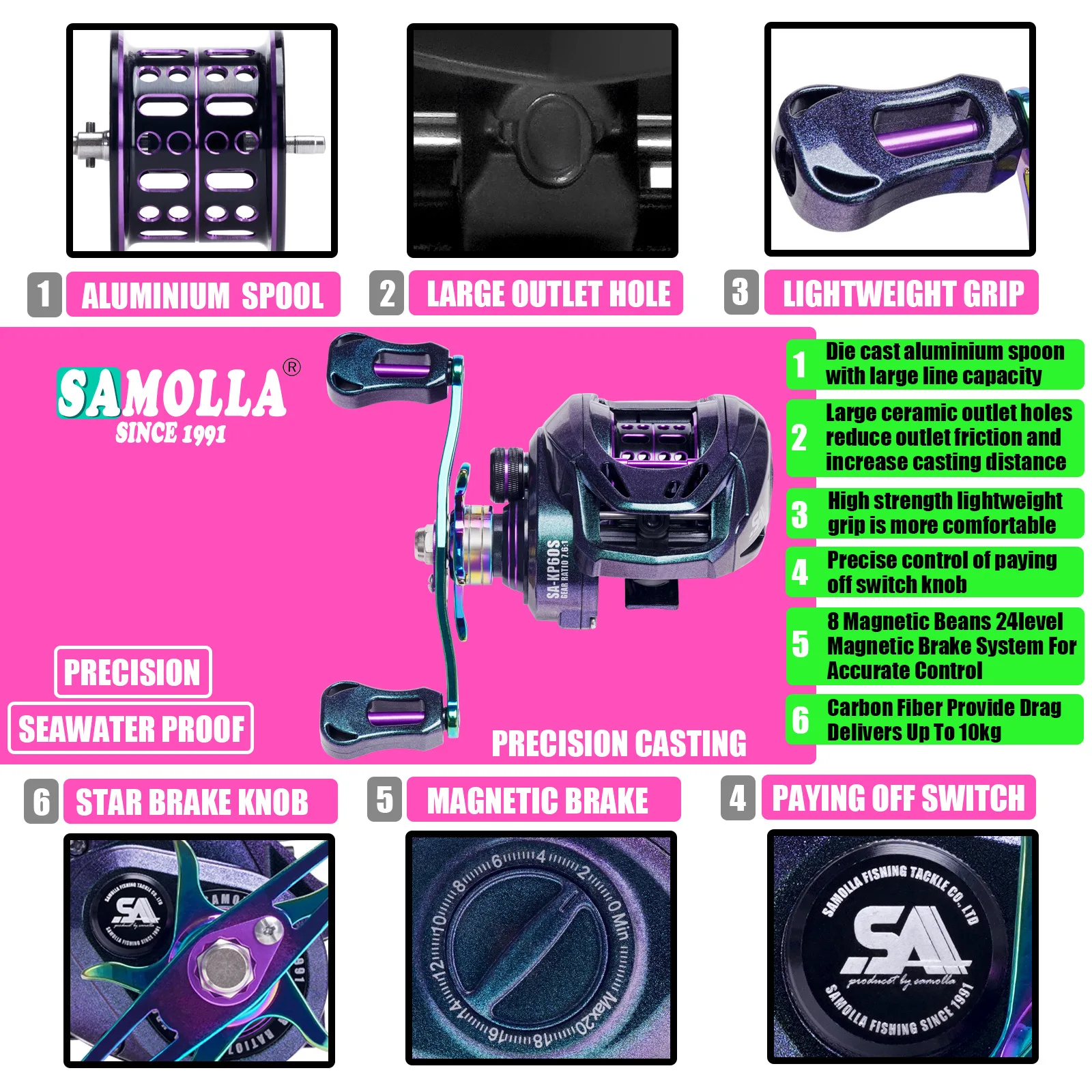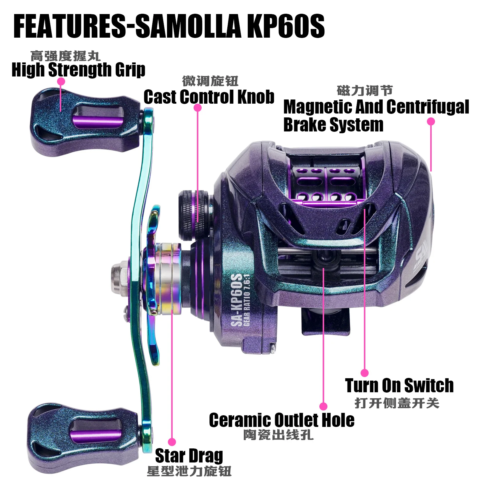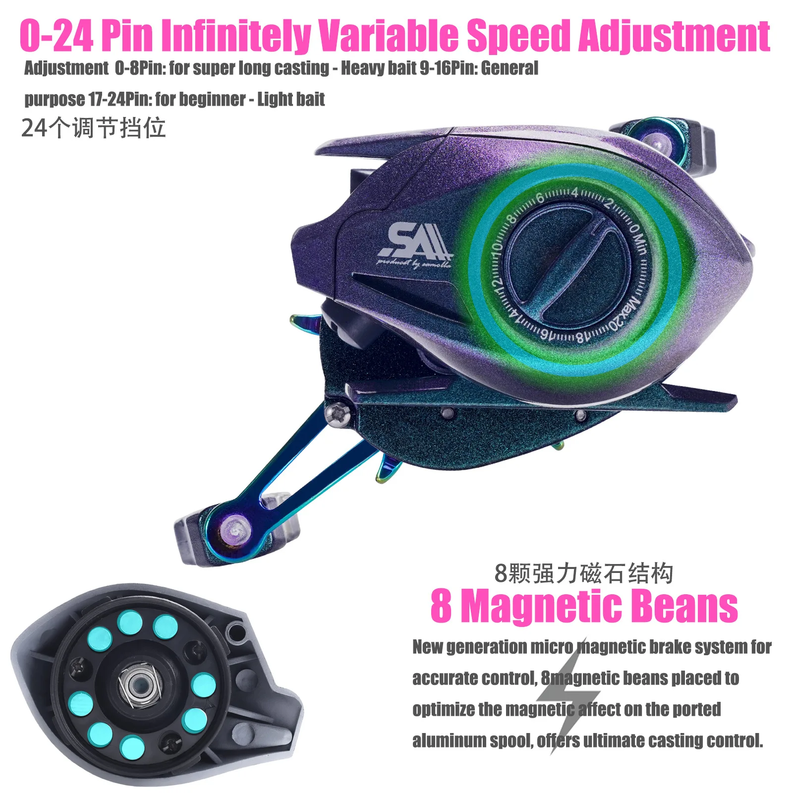 Carrete de pesca de fundición de cebo de alta velocidad, cebos ligeros, tiro largo, CNC, carrete de eje corto, arrastre máximo de 10 kg, aleación de aluminio, 7,6:1