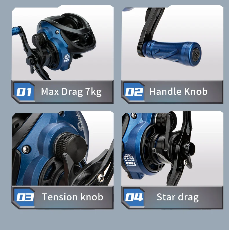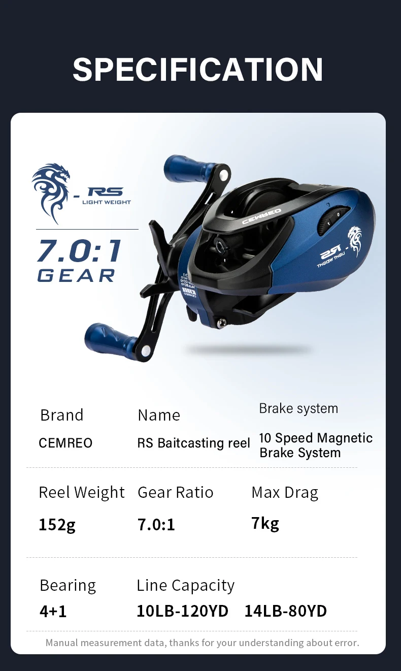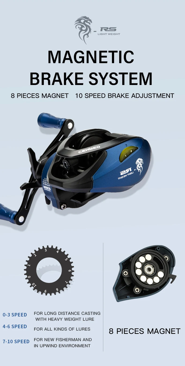 Carrete de pesca de fundición de cebo, freno magnético de arrastre de 7kg, relación de engranaje 7,0:1, aparejos de pesca ultraligeros, pesca de carpa, trucha y lubina, modelo RS-BL