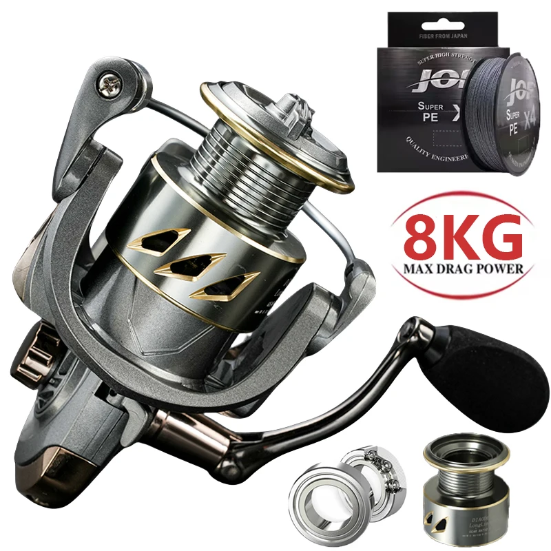 Carrete de pesca de lanzamiento largo con relación de engranaje de alta velocidad 5,2:1, rueda de Baitcasting de carpa de tracción máxima de 8 KG, Pesca mano izquierda/derecha con kits de línea