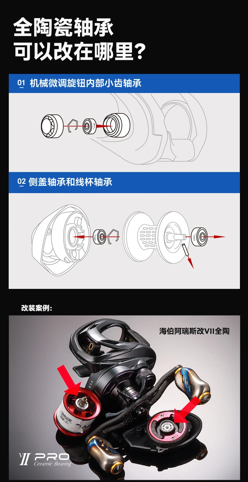 Carrete de pesca de fundición PYL, carretes de pesca con rodamiento de bolas totalmente cerámico blanco, Kit de reparación/DIY/modificación para SHIMANO DAIWA ABU