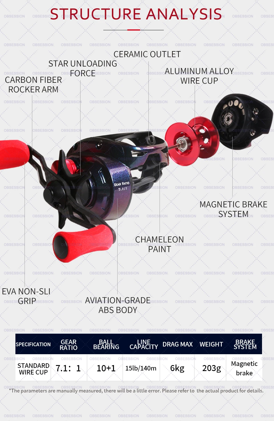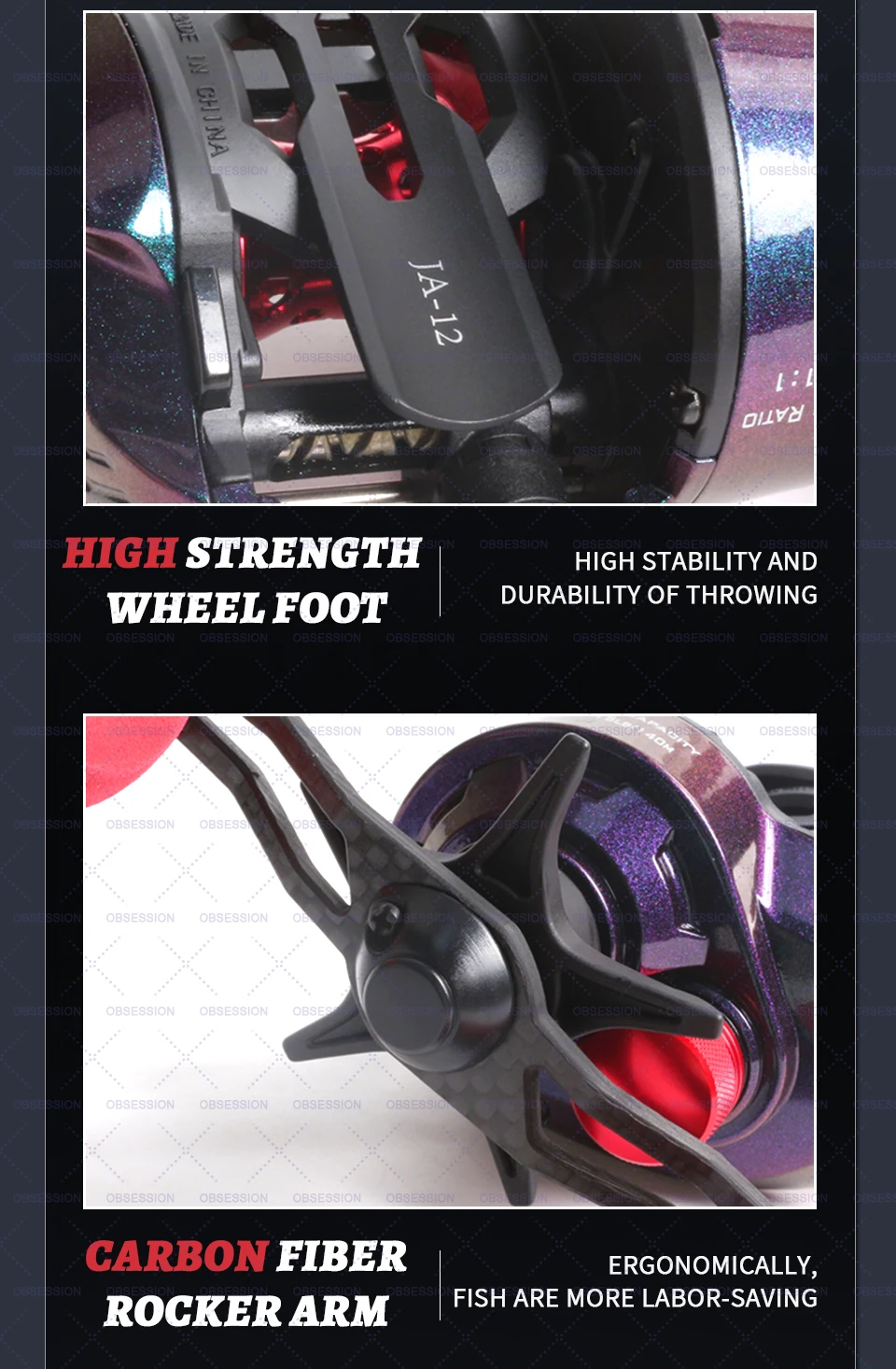 3.El sistema de engranajes de doble rodamiento proporciona un carrete más liviano resistente contra cargas pesadas de hasta 15 libras.