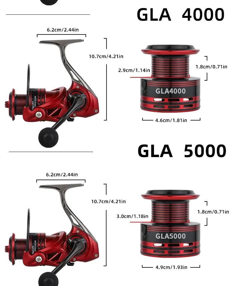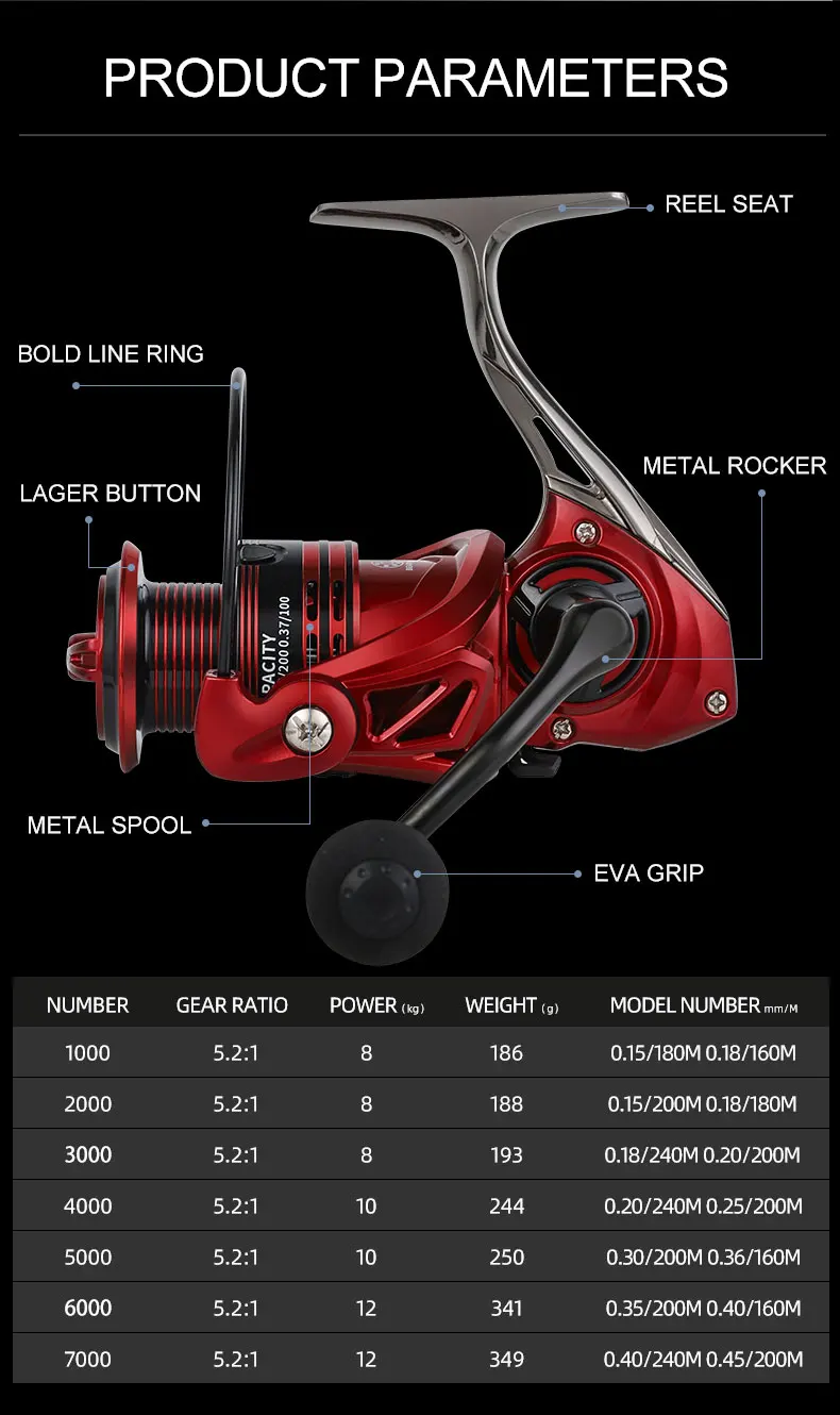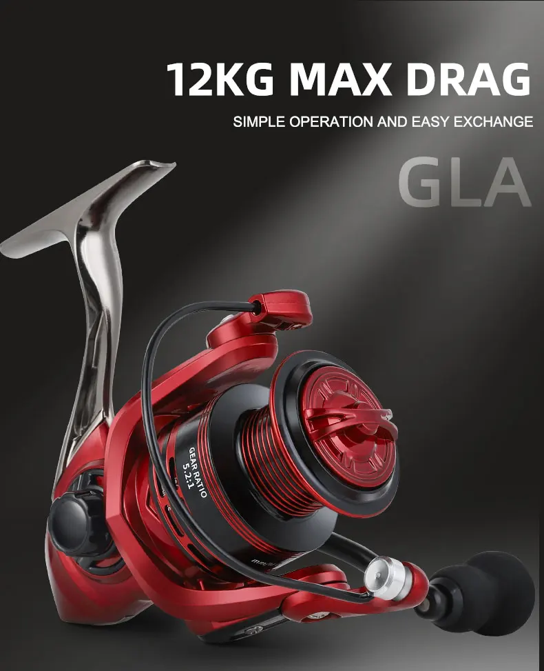 Carrete de pesca giratorio 1000-7000, cuerpo de Metal duradero, arrastre máximo de 12KG, 5,2: 1, accesorios de pesca de carrete de agua dulce y salada